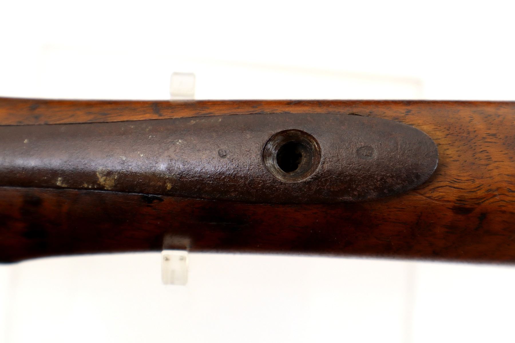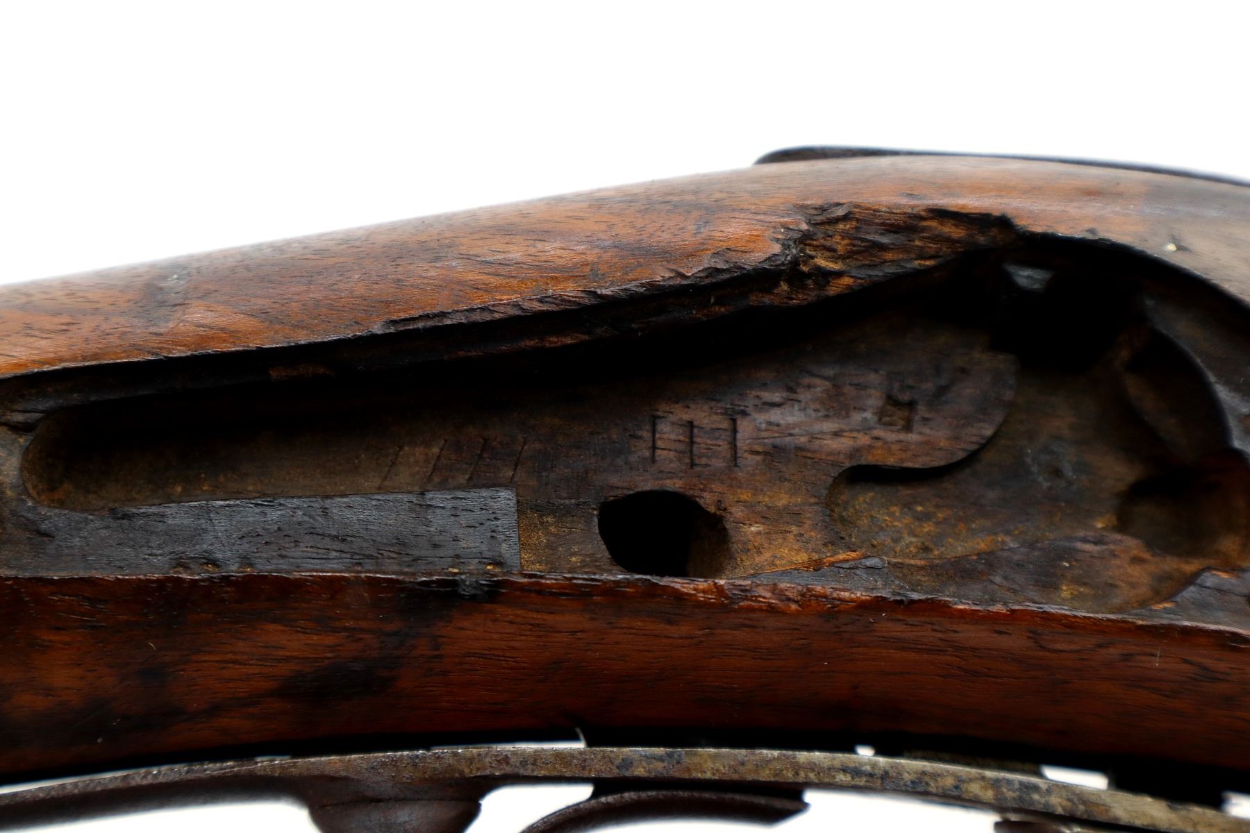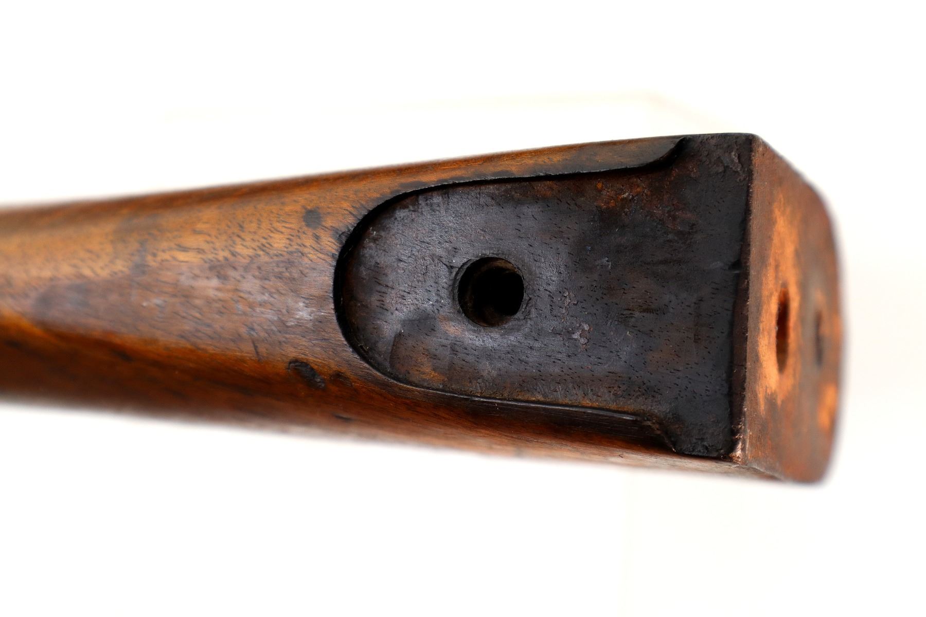 Wear: Metal finish turning brown with pitting, rust, scratches, handling marks and wear. Stock shows marks, scratches and wear.