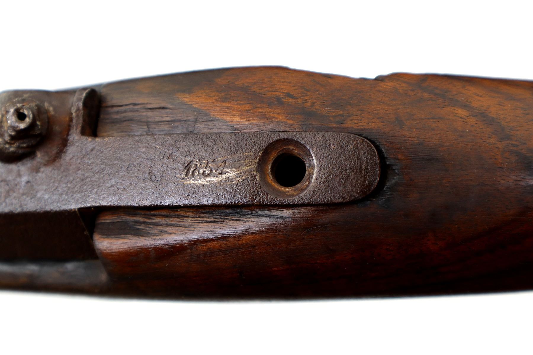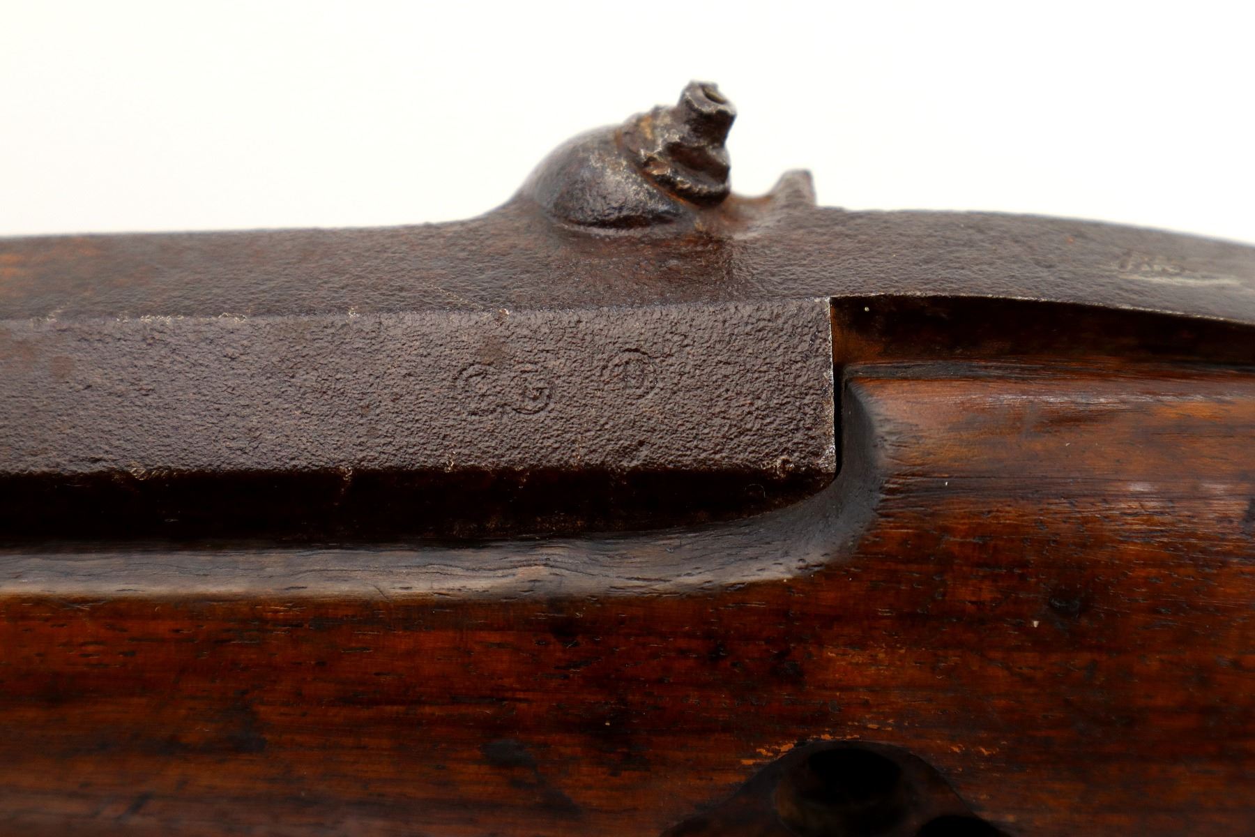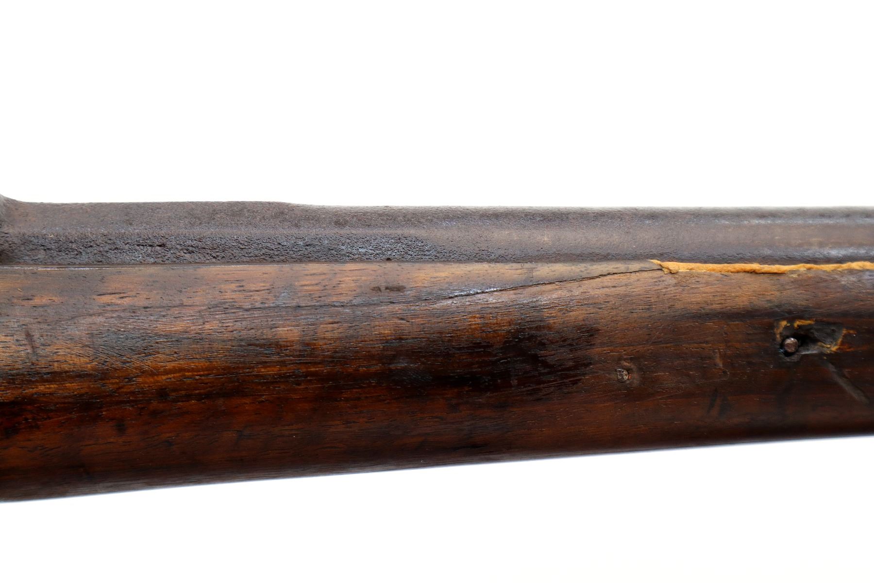 Wear: Metal finish turning brown with pitting, rust, scratches, handling marks and wear. Stock shows marks, scratches and wear.