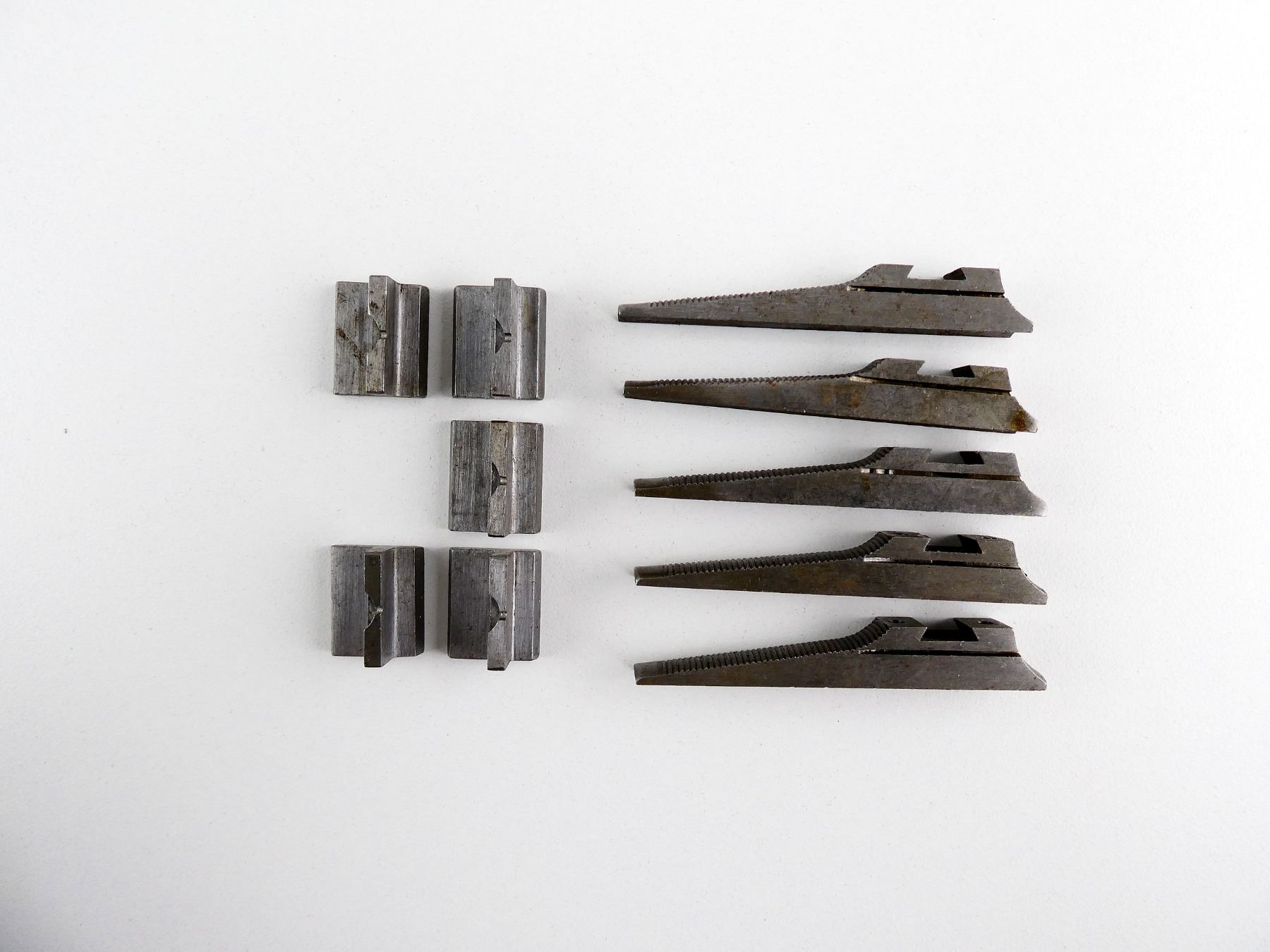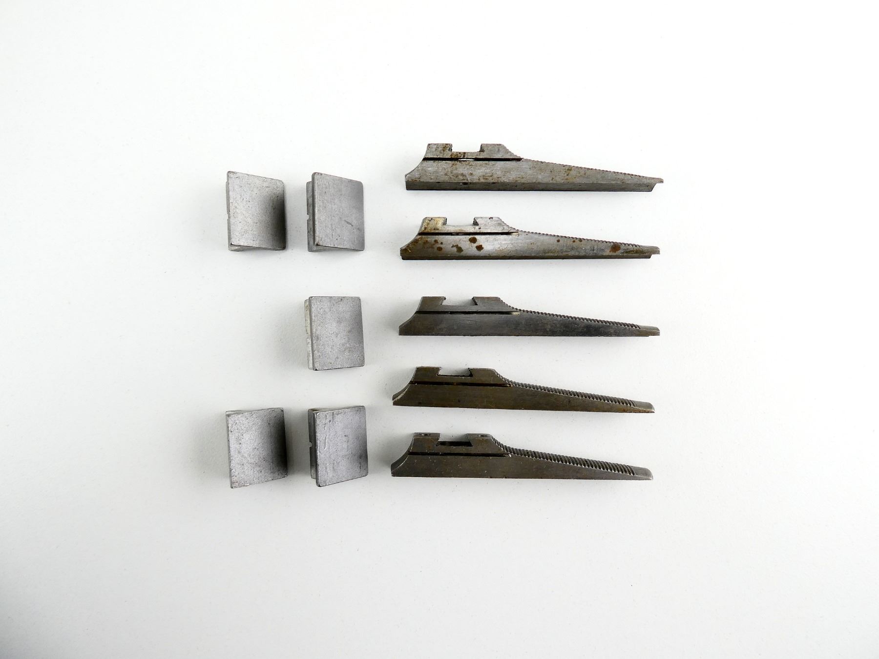 LOT INCLUDES; (5) FRONT SIGHT RAMPS, IN THE WHITE STEEL CONSTRUCTION & (5) REAR SIGHT BLADES, IN THE WHITE STEEL CONSTRUCTION. MAY REQUIRE FITTING. SEE PHOTOS.