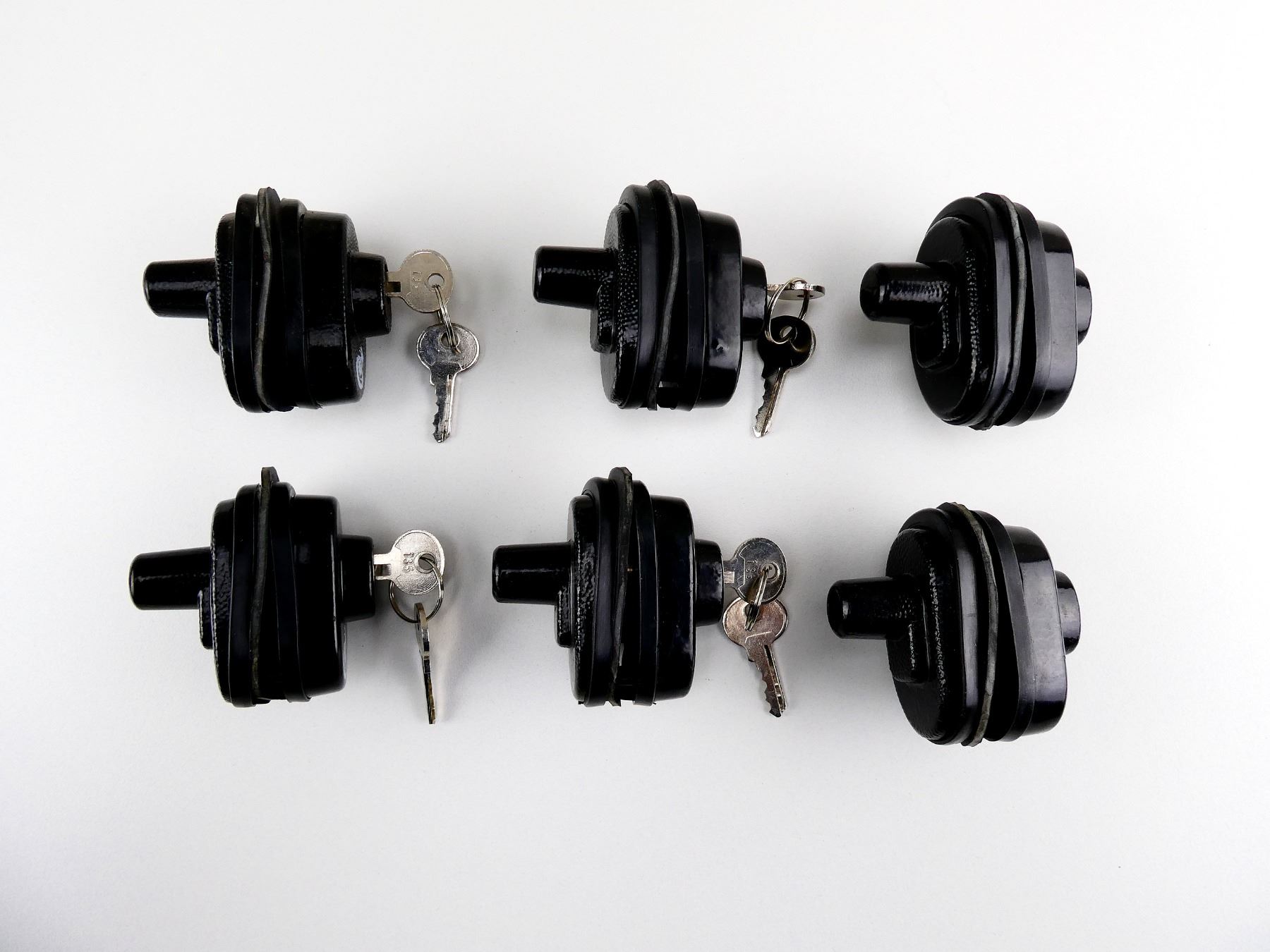 LOT INCLUDES; (6) KEYED TRIGGER LOCKS WITH KEYS, NO GUARANTEE THAT ALL KEYS WORK WITH ALL LOCKS, VARIOUS MARKINGS. SEE PHOTOS.