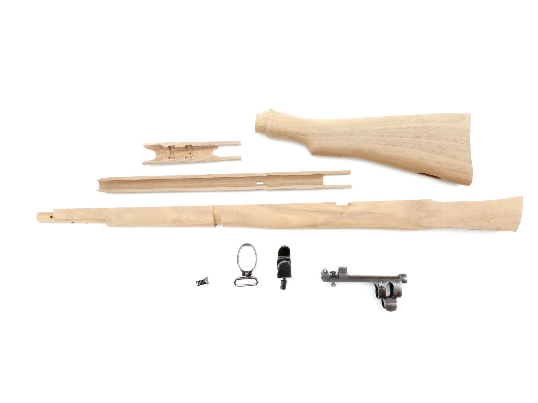 LOT INCLUDES; UNFINISHED BALTIC BIRCH CNC, (1) BUTT STOCK, (1) FOREND, (1) FRONT HAND GUARD & (1) REAR HAND GUARDS, NOSE CAP, BARREL BAND, REAR SIGHT PROTECTOR, SCREWS, ETC. MAY REQUIRE FITTING. SEE PHOTOS.