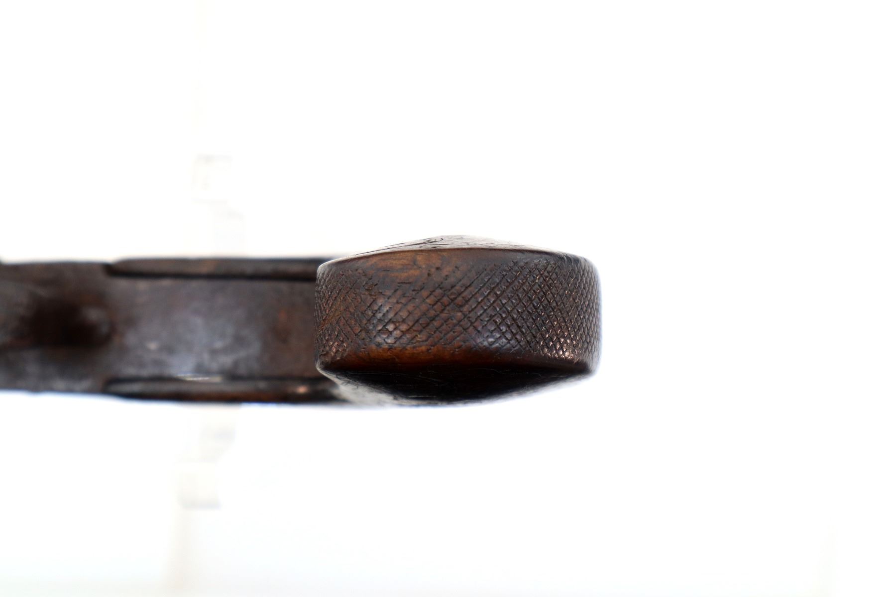 Wear: Metal finish turning brown with pitting, light rust, scratches, handling marks and wear. Grip shows marks, scratches and wear.