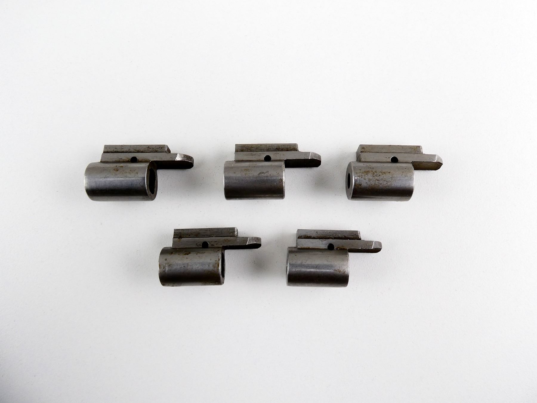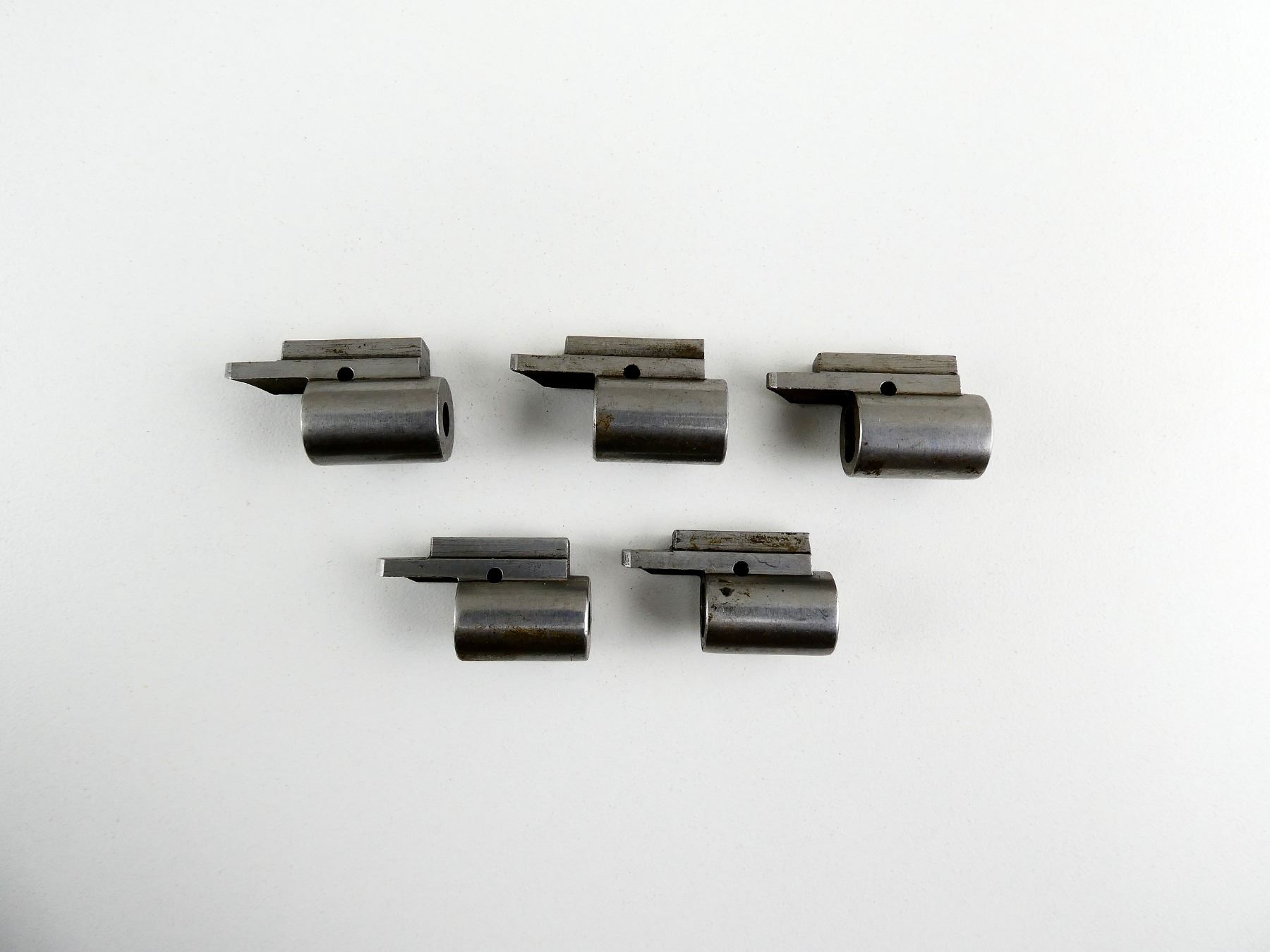 LOT INCLUDES; (5) M98 MAUSER FLAT BOTTOM COCKING PIECES, STEEL, USED TO ACCOMMODATE ADJUSTABLE TIMNEY TRIGGERS, UNMARKED. MAY REQUIRE FITTING. SEE PHOTOS.