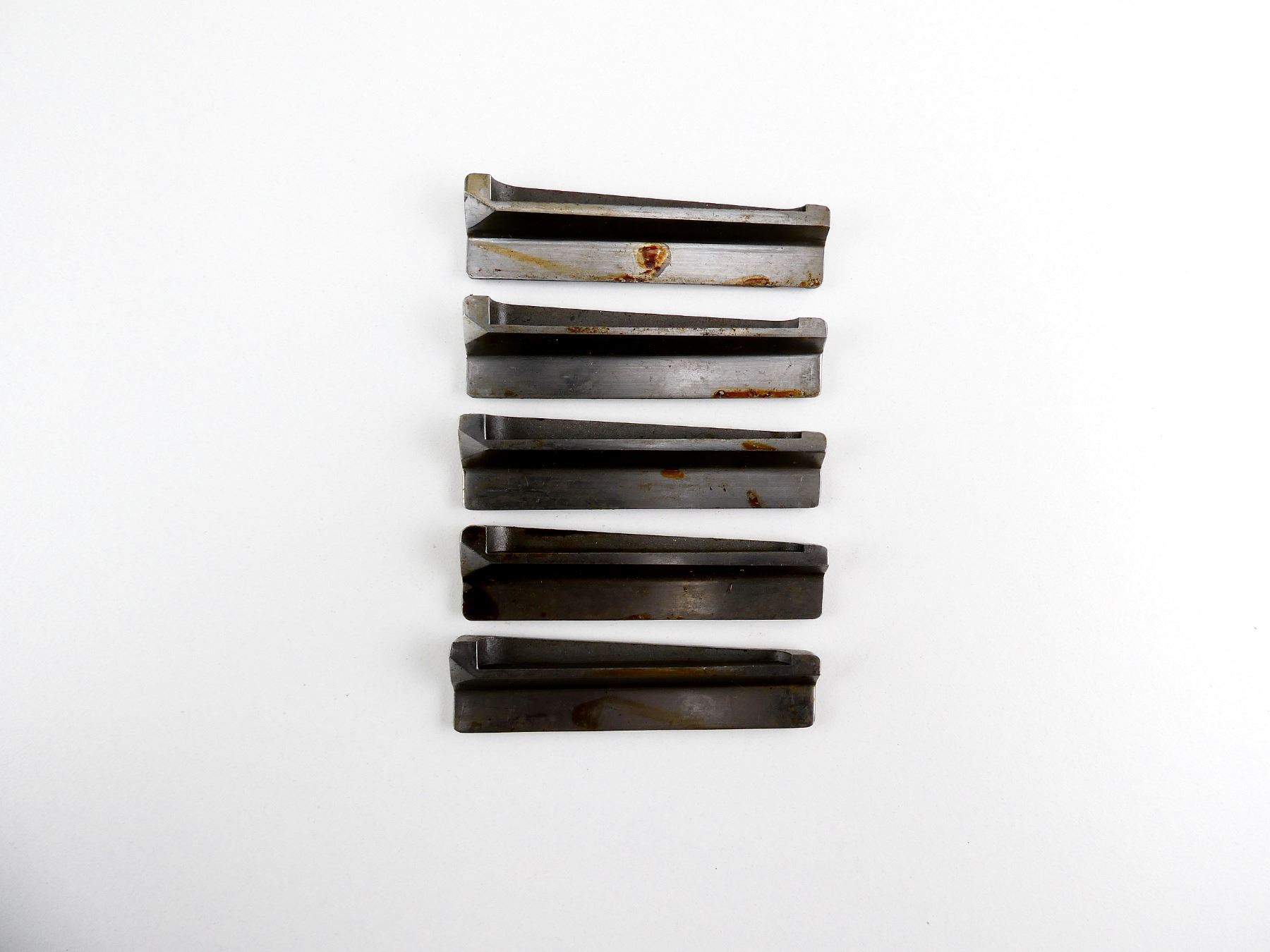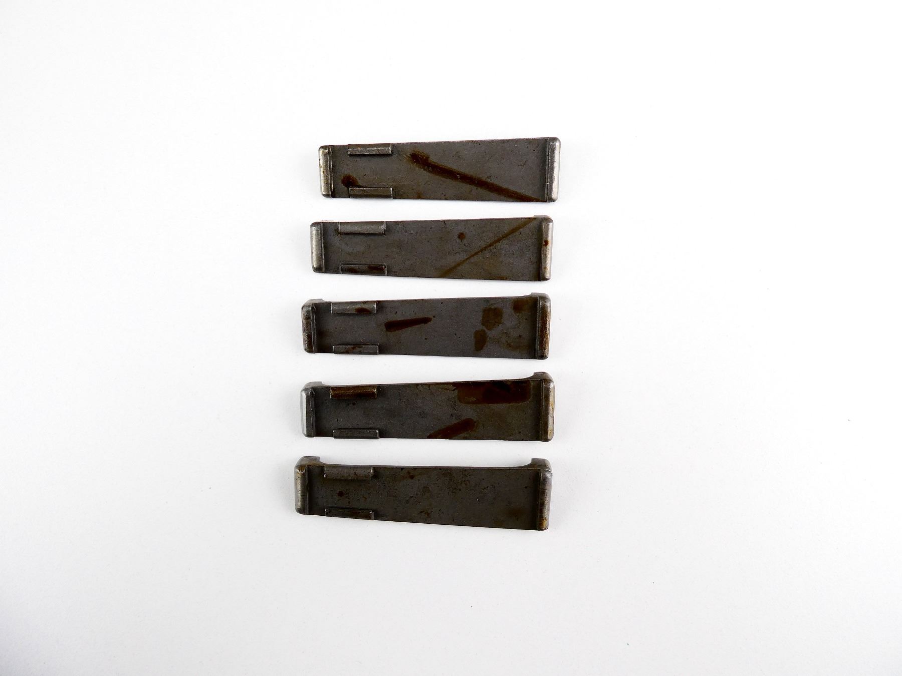 LOT INCLUDES; (5) MAG FOLLOWERS, IN THE WHITE STEEL CONSTRUCTION, UNMARKED. MAY REQUIRE FITTING. SEE PHOTOS.