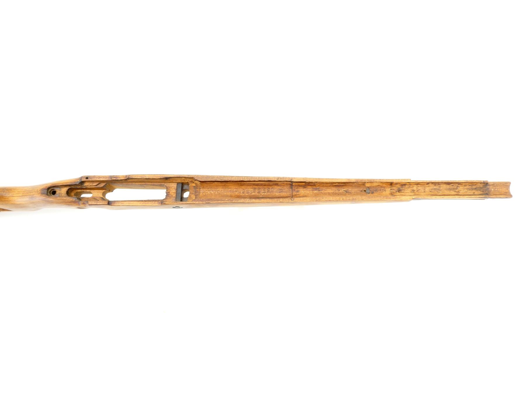(1) WOODEN STOCK, RIGHT HANDED, SMOOTH, PISTOL GRIP, WITH WOOD HAND GUARD, MAY HAVE SMALL CRACKS & CHIPS / SHOWS WEAR / TEAR, UNMARKED, OAL APPROX. 38". MAY REQUIRE FITTING. SEE PHOTOS.