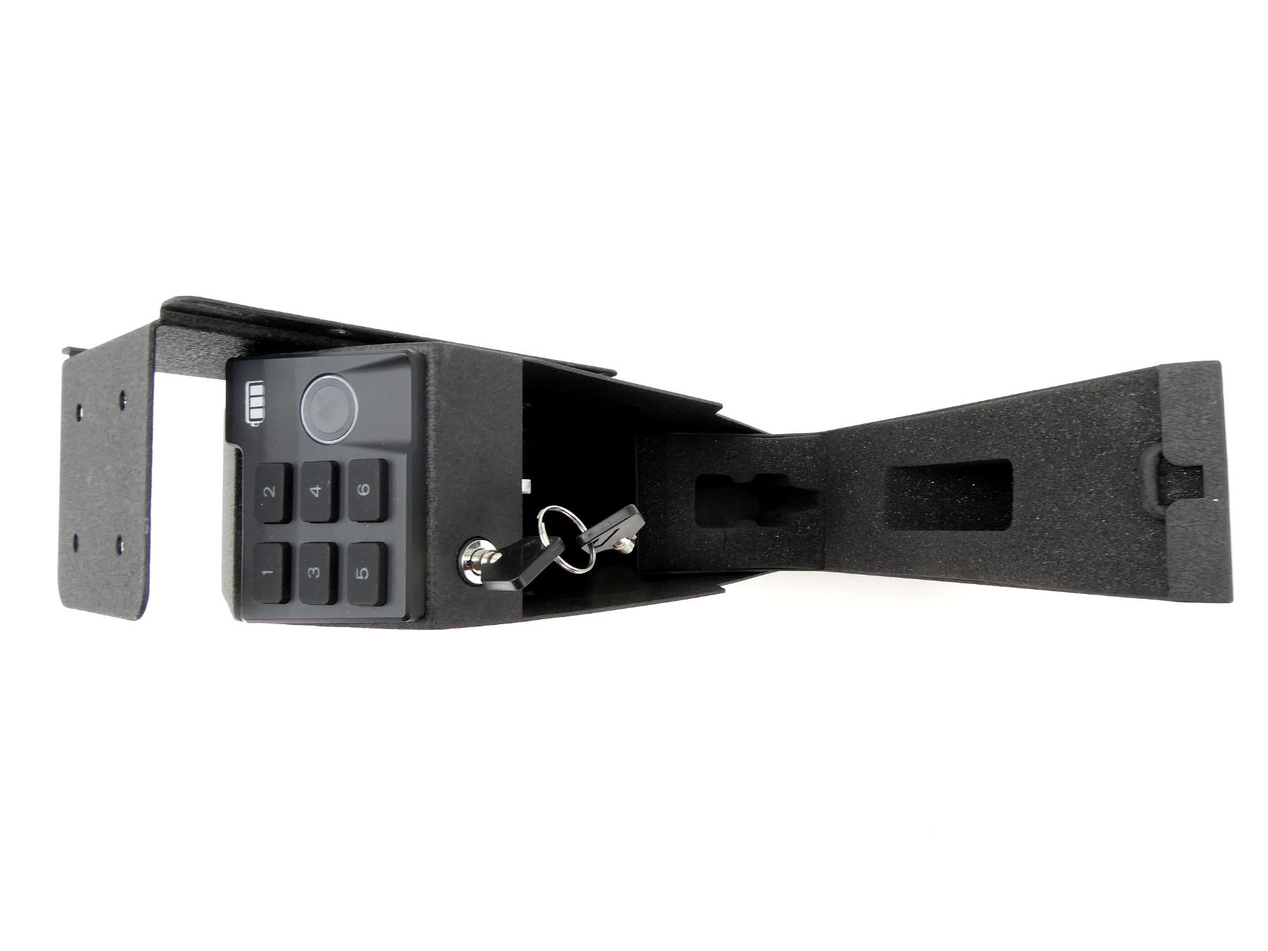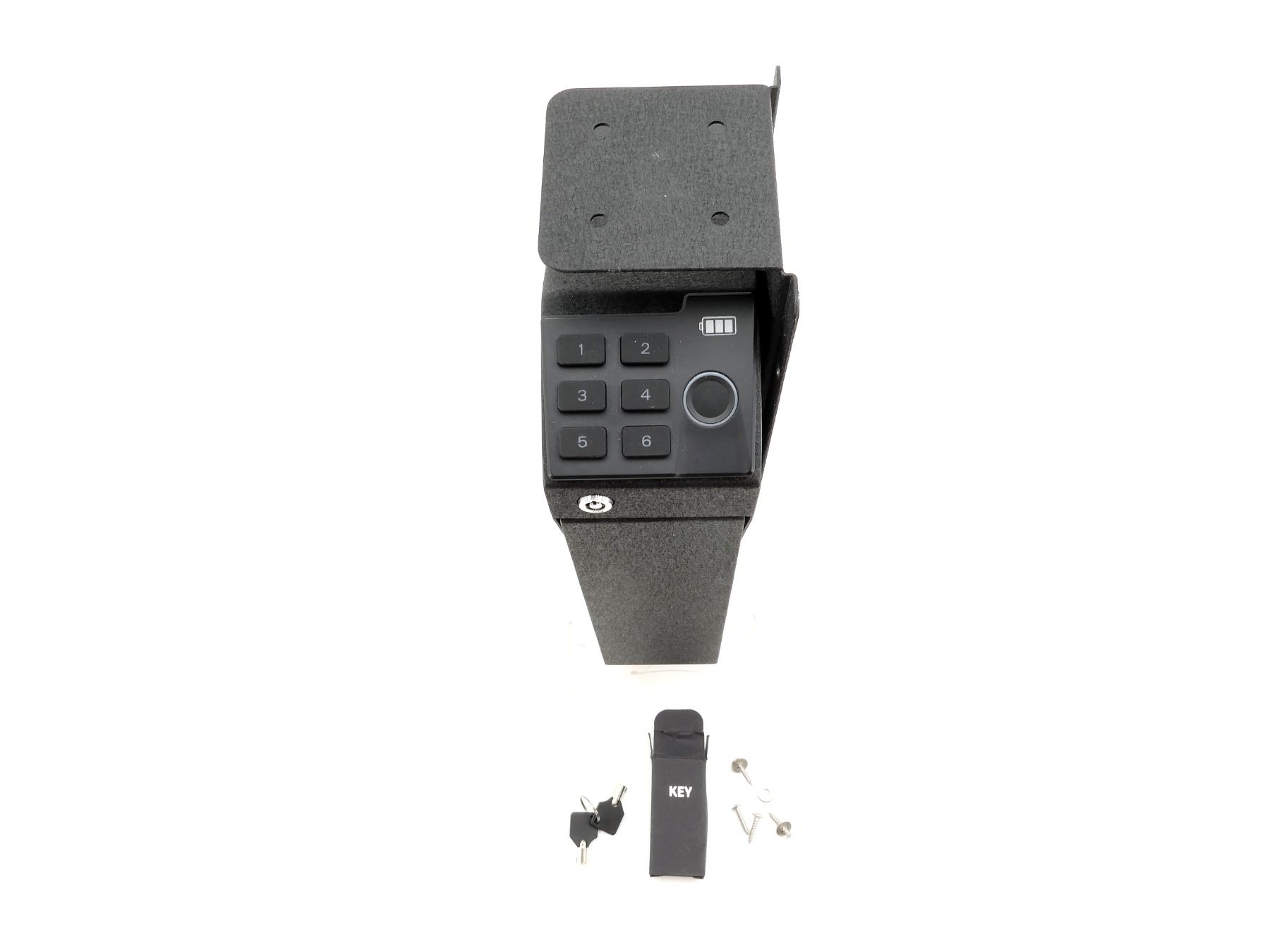 LOT INCLUDES; (1) BLACK METAL PADDED HAND GUN SAFE, (2) KEYS, ELECTRONIC COMBINATION LOCK, MOUNTING BRACKETS WITH SCREWS, APPROX. OAL 15 1/2"X3 1/2"X7 1/2", SHOWS WEAR AND TEAR FROM USAGE, SEE PHOTOS.