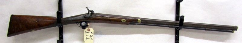 NON-RESTRICTED, PERCUSSION CAP MUZZLELOADER, 12 GA., FULL CHOKE, 30" BARREL, NO SN. WOOD IS WELL WORN AND CRACKED IN MULTIPLE PLACES AROUND LOCK. BLUEING IS BROWN AND PITTED AT MUZZLE AND LOCK. BORE IS PITTED.