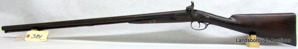 NON-RESTRICTED, MULTI BARREL, 12GA PERCUSSION, 30" DAMASCUS BARRELS WITH FIXED CHOKES, SN NONE. WOOD HAS CHIPS AROUNG FOREARM AND UPPER TANG, BLUING IS BROWN, BORES RUSTY.