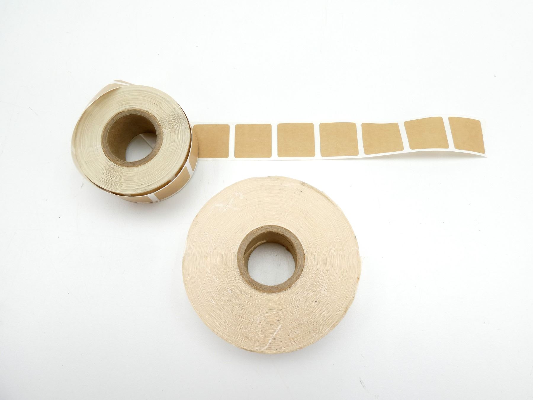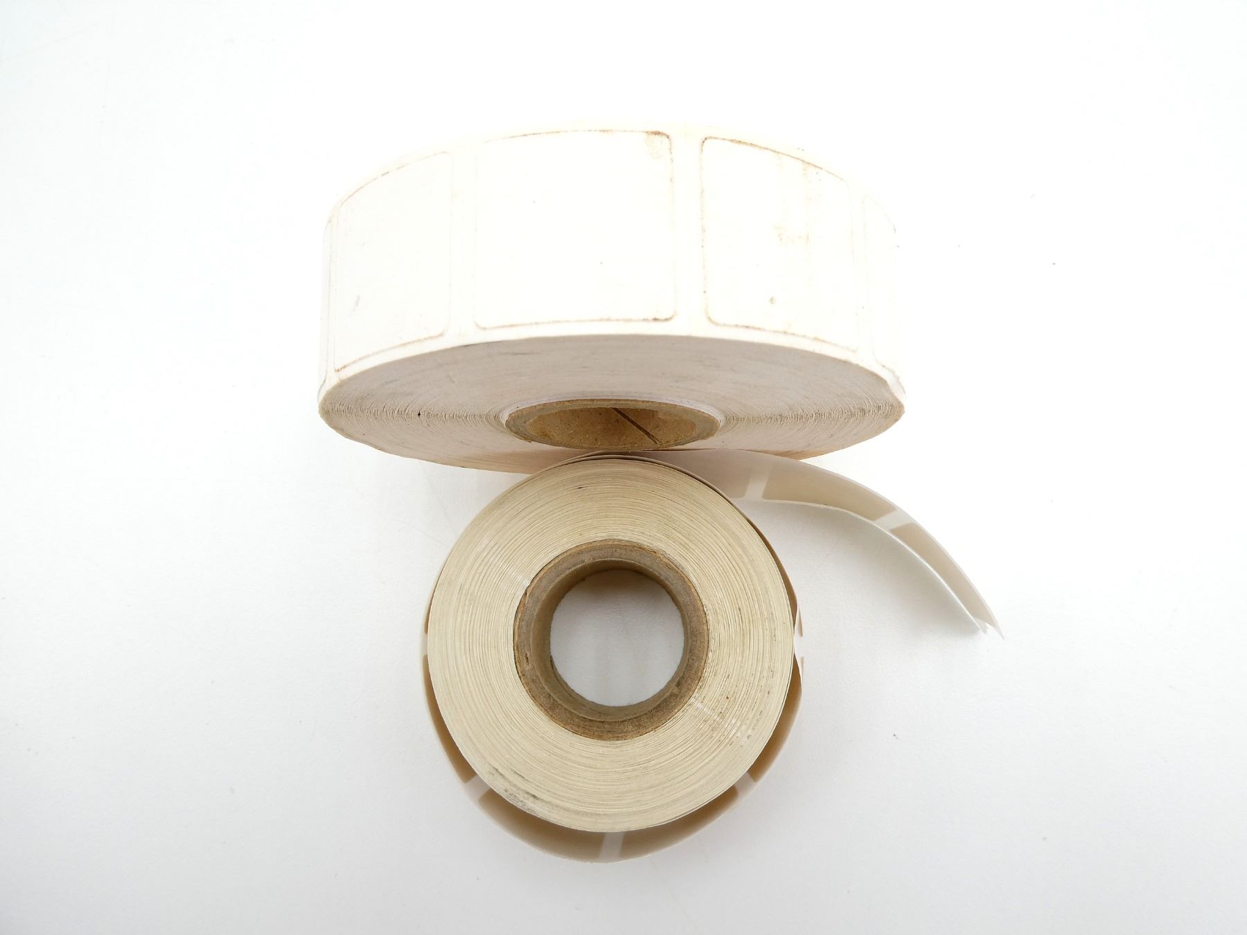 LOT INCLUDES; APPROX. (200) PRESSURE SENSITIVE STICKERS, TAN / SAND COLOUR & (500) PRESSURE SENSITIVE STICKERS, WHITE, FULL ROLL. SEE PHOTOS.
