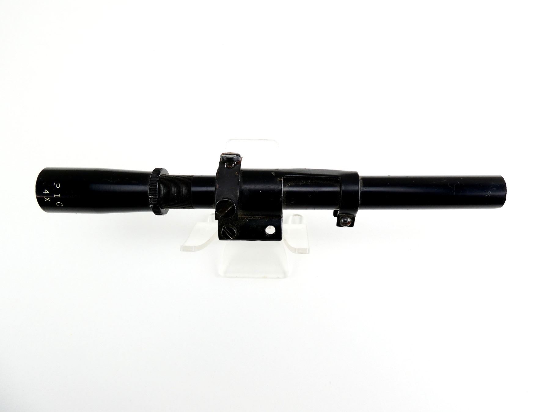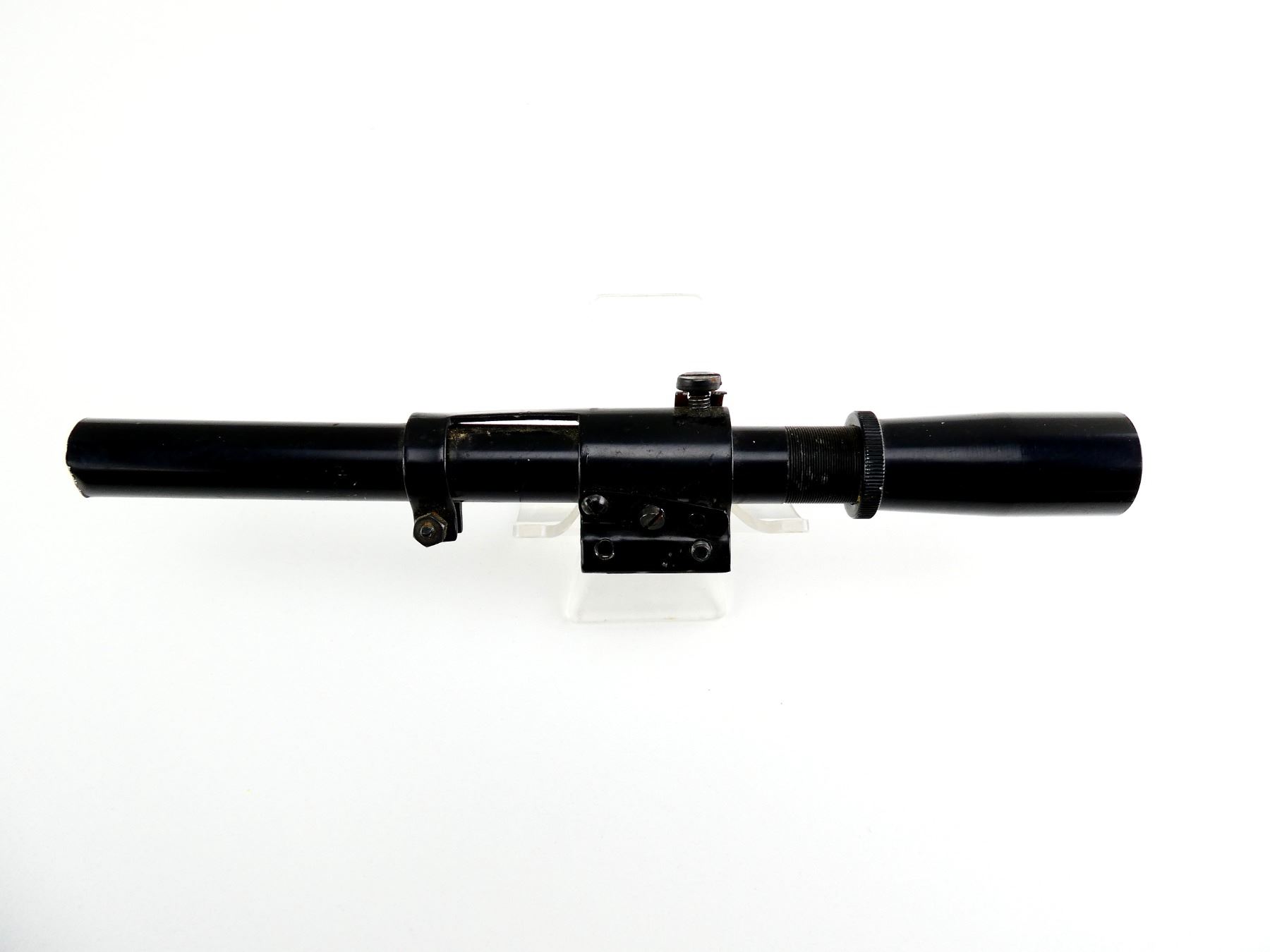 (1) CLEAR OPTICS, DUPLEX RETICLE, 3/4" TUBE DIAMETER, WORKING MAGNIFICATION RING, WITH ATTACHED RINGS, ETC., UNMARKED, SHOWS WEAR & TEAR / USE MARKS. SEE PHOTOS.