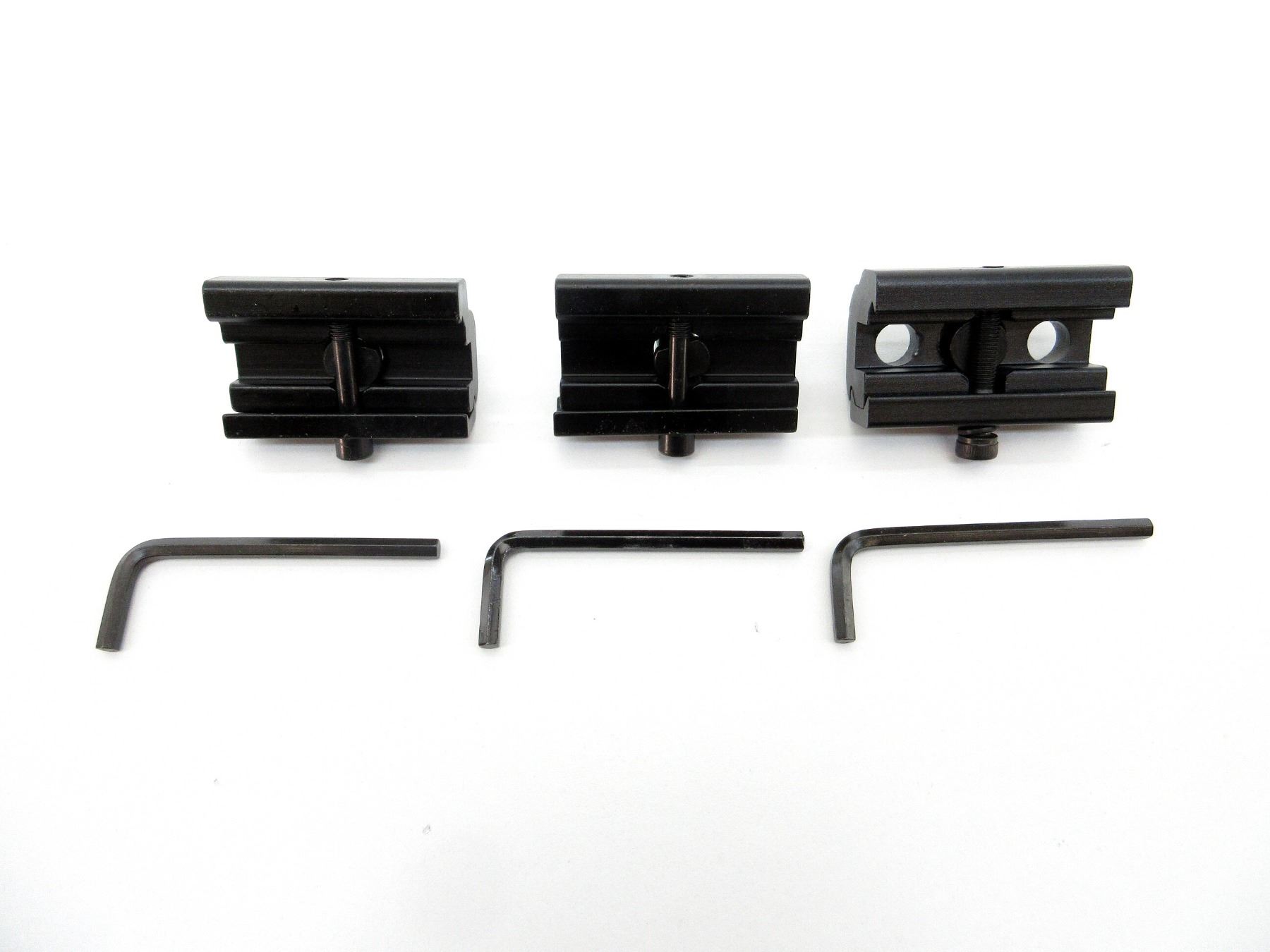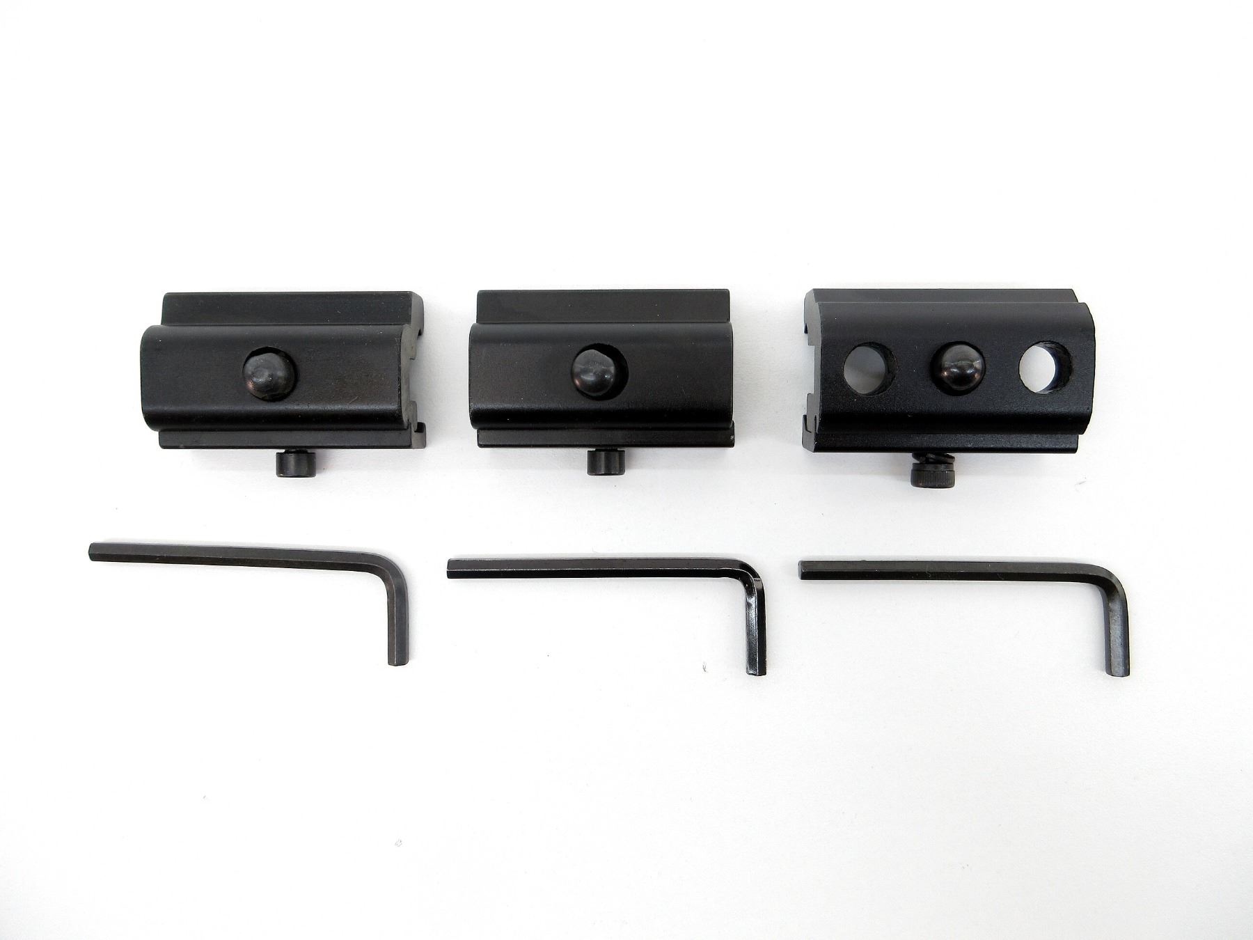 LOT INCLUDES; (3) SCOPE RING BASES, BLACK STEEL CONSTRUCTION, UNMARKED, APPEARS NEW OLD STOCK, WITH ALLEN KEYS, OVERALL LENGTH APPROX. 2", MAY NOT BE COMPLETE. MAY REQUIRE FITTING. SEE PHOTOS.