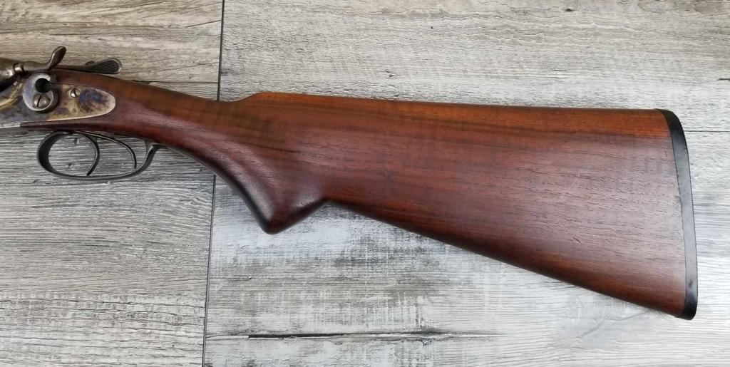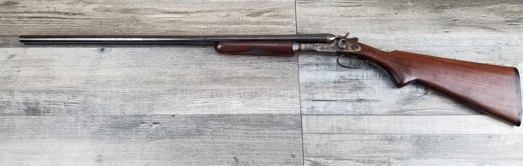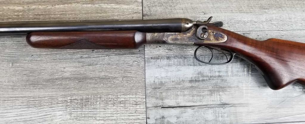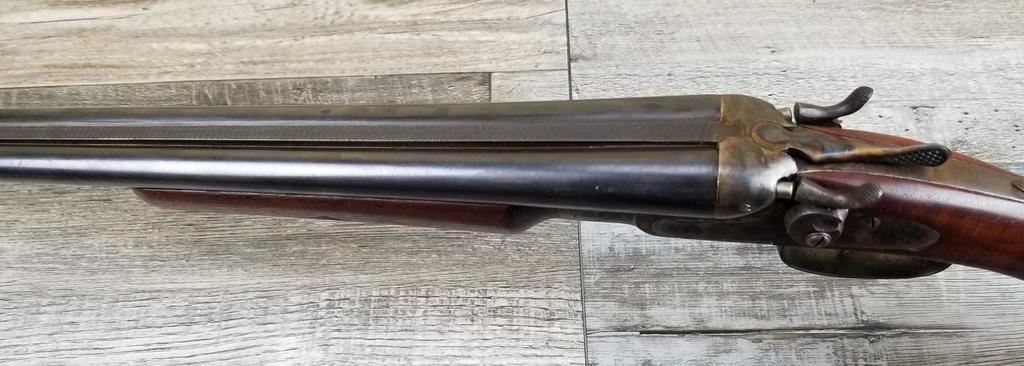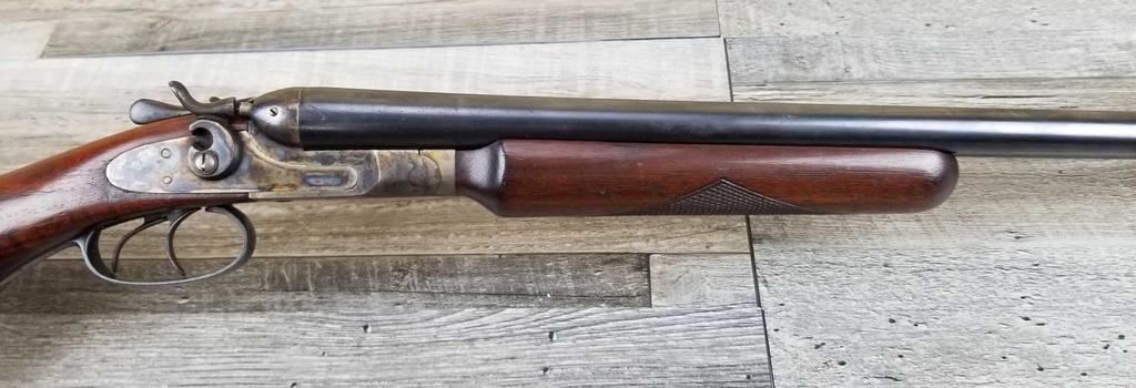 UNABLE TO FIND MAKER NAME. VERY GOOD OVERALL. EXPOSED HAMMER SHOTGUN.