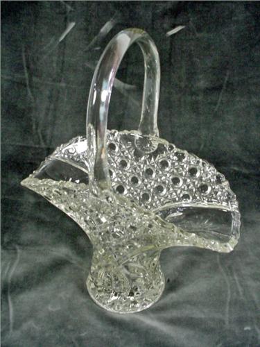 UNMARKED PRESSED GLASS DAISY BUTTON BASKET. 14" X 10"