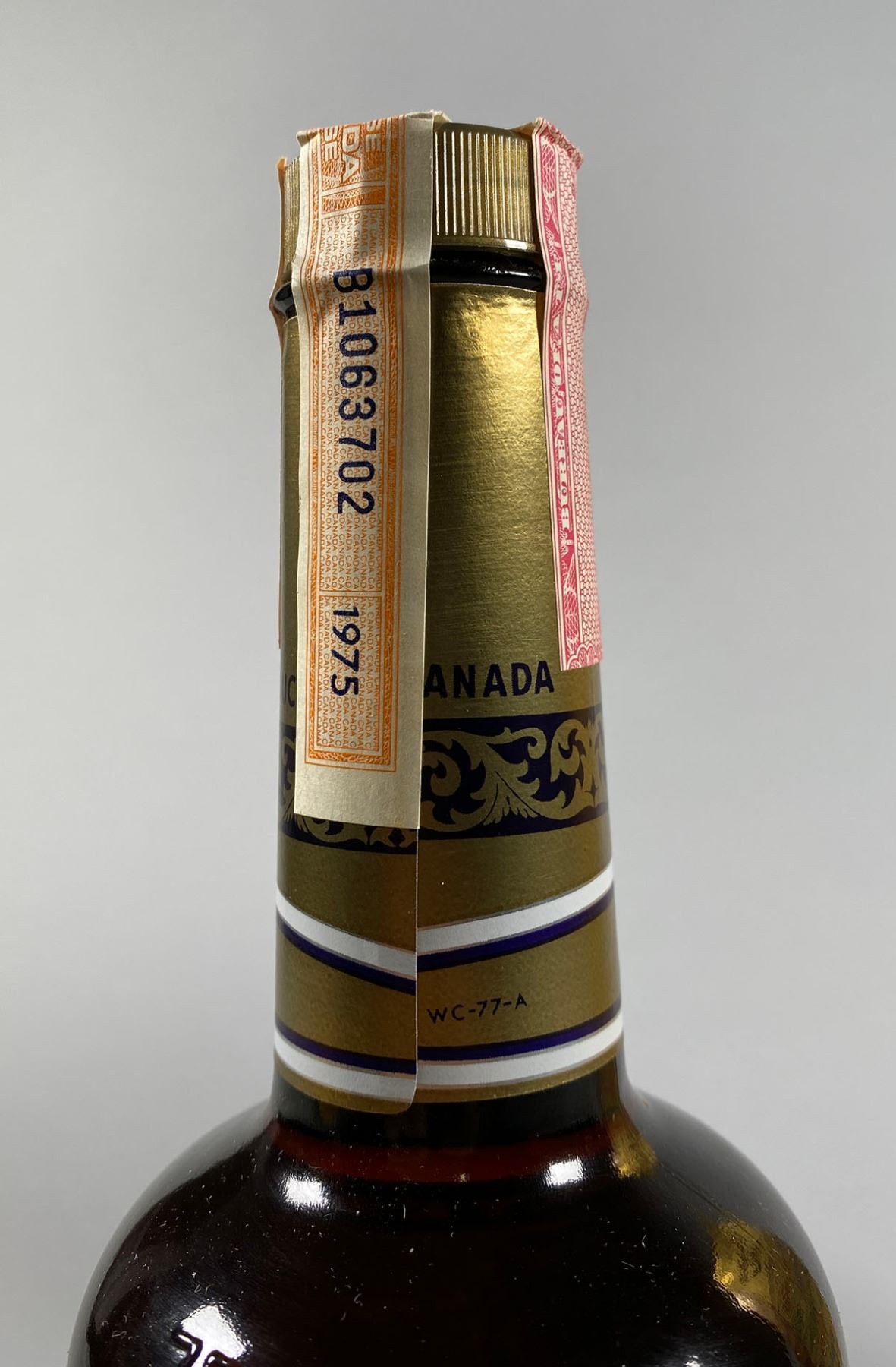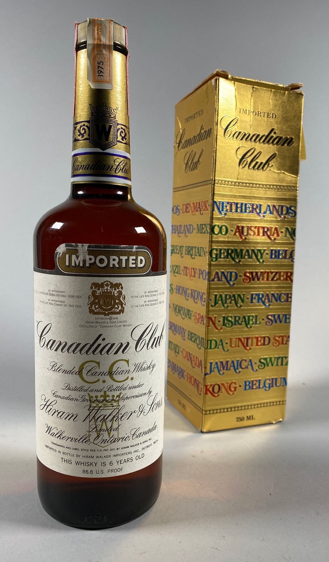Vintage 1975 sealed Canadian Club whisky. 86.8 proof liquor, 750ml. bottle. Box included. PLEASE NOTE: This item is being sold as a collectible bottle, and its contents are incidental and not intended for consumption.