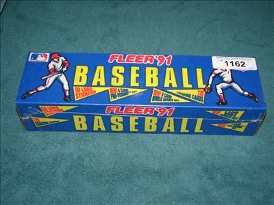 UNOPENED BOX OF FLEER 1991 BASEBALL TRADING CARDS (720), LOGO STICKERS (50), 4 CARD PROVISIONS SET, AND 8 CARD WORLD SERIES SET. AS SHOWN. VIEW PICTURE FOR DETAIL.