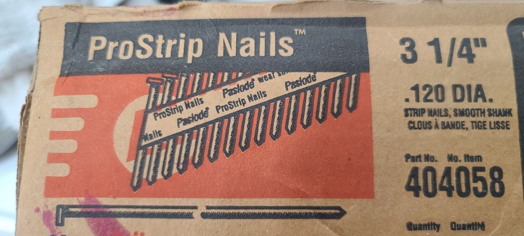 UNOPENED PASLODE 3 1/4" PROSTRIP NAILS 120DIA QTY3000