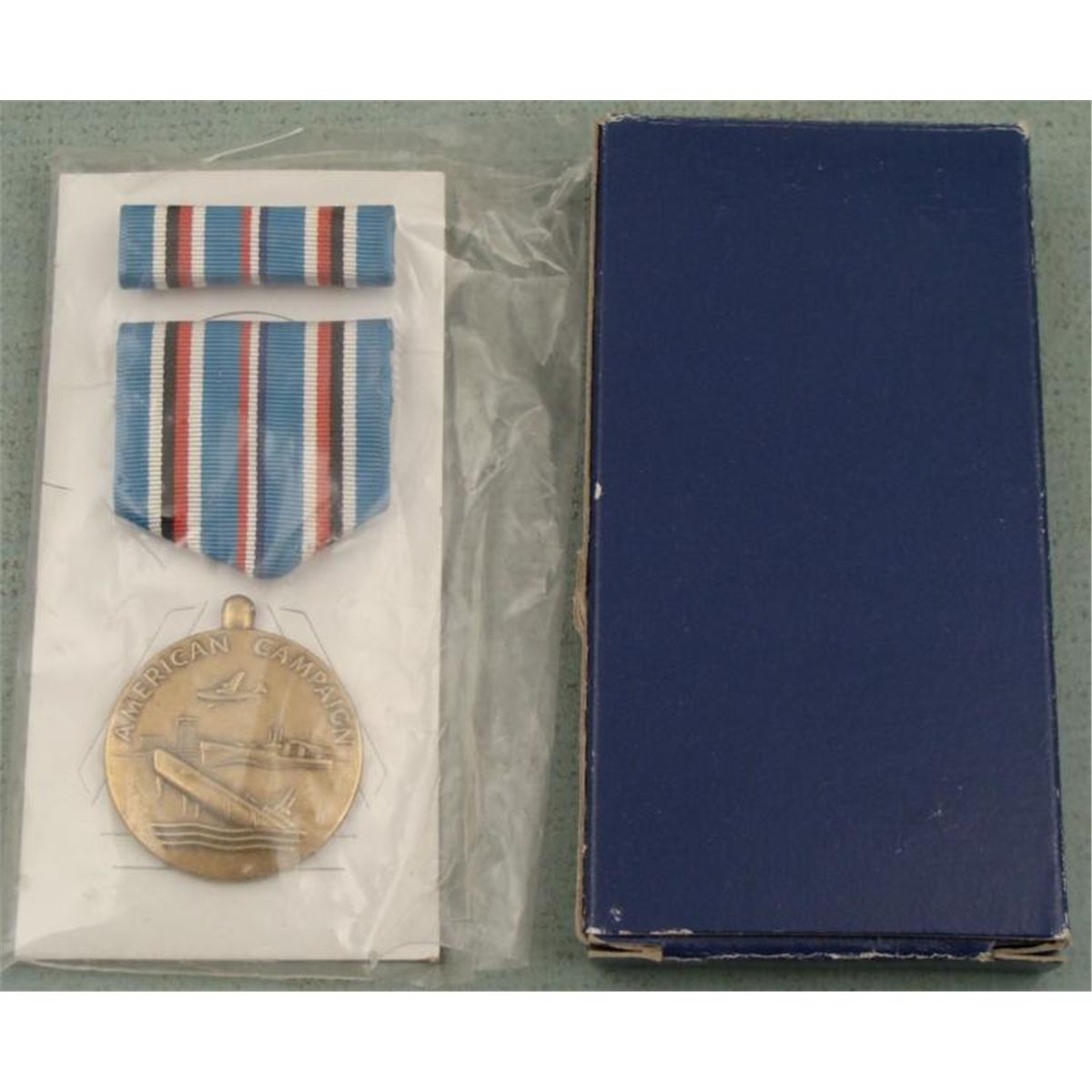 THIS IS AN UNOPENED WWII AMERICAN CAMPAIGN MEDAL SET. IT IS IN ITS ORIGINAL BOX. THE SET IS MADE UP OF A MEDAL-RIBBON & BAR. * * *