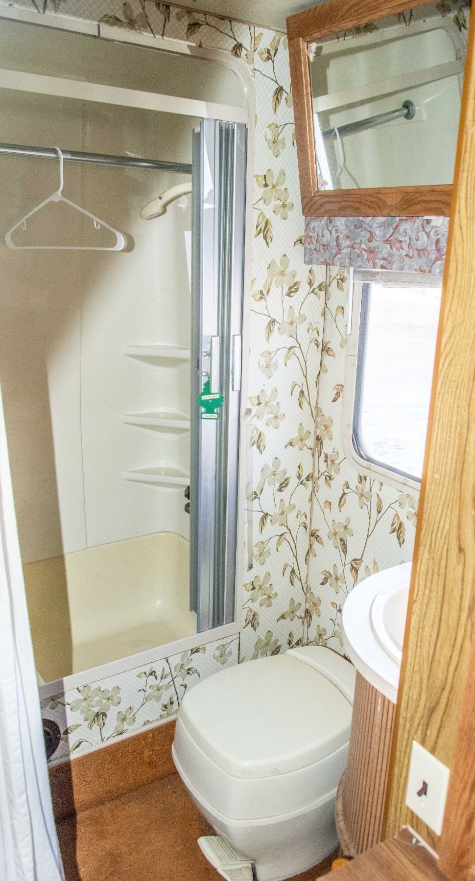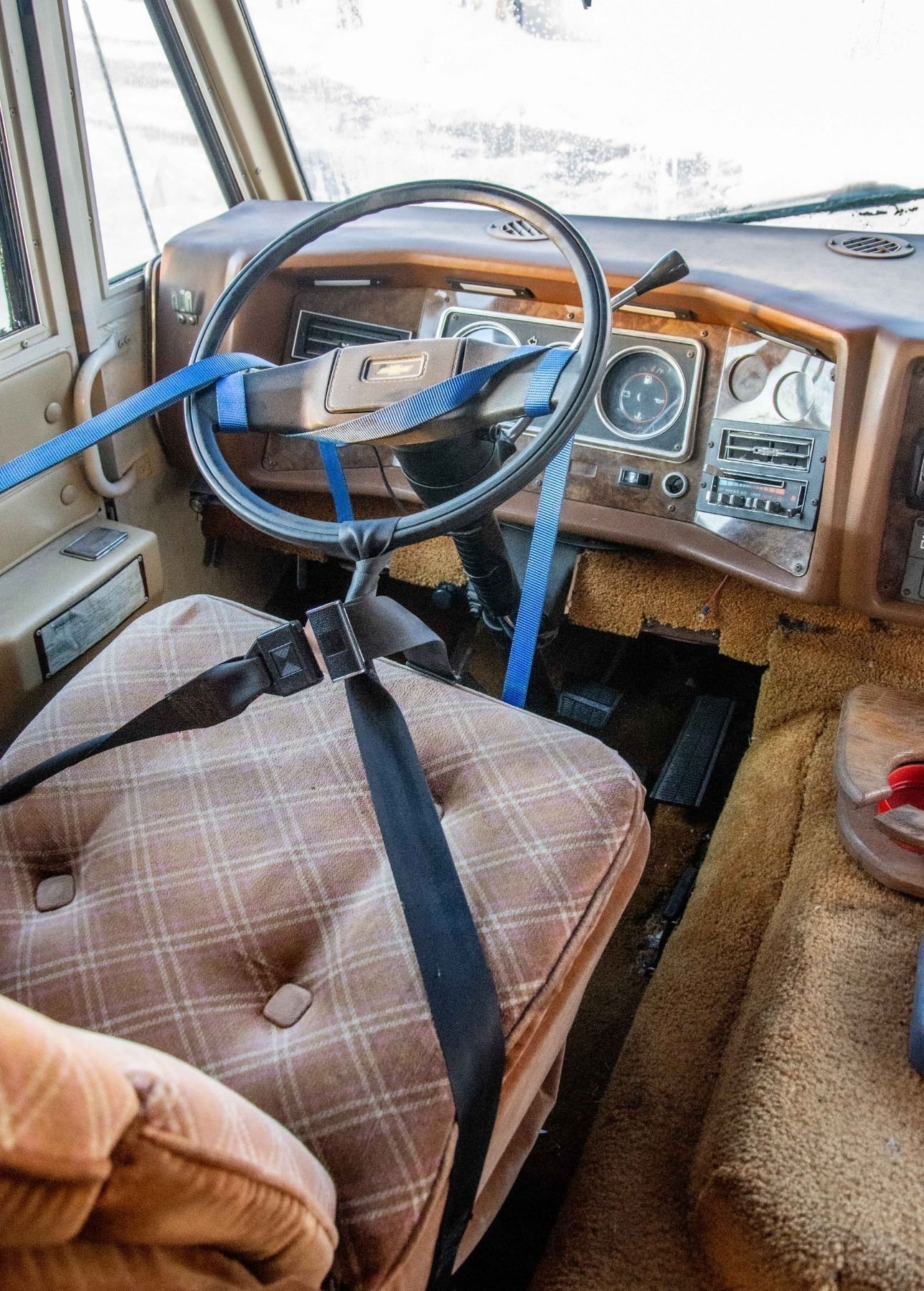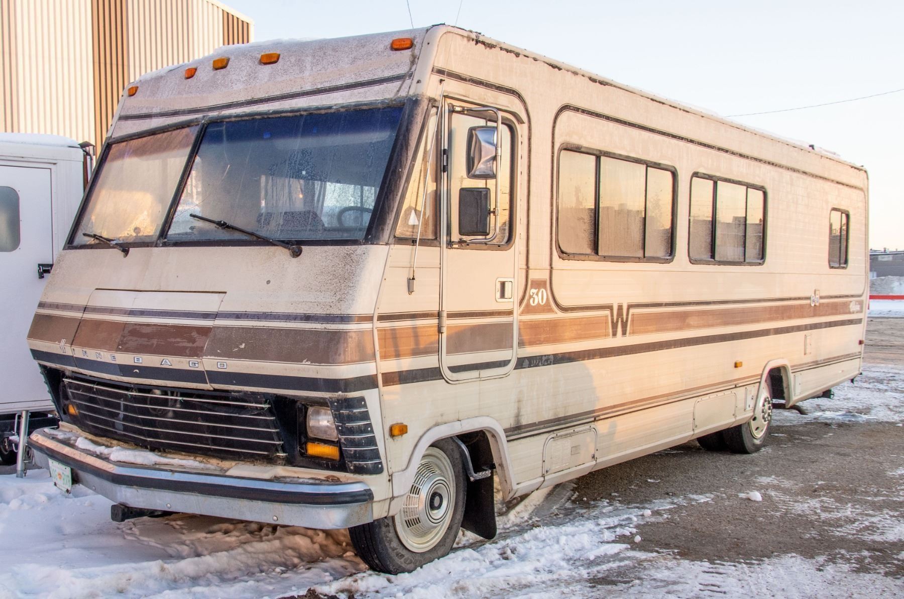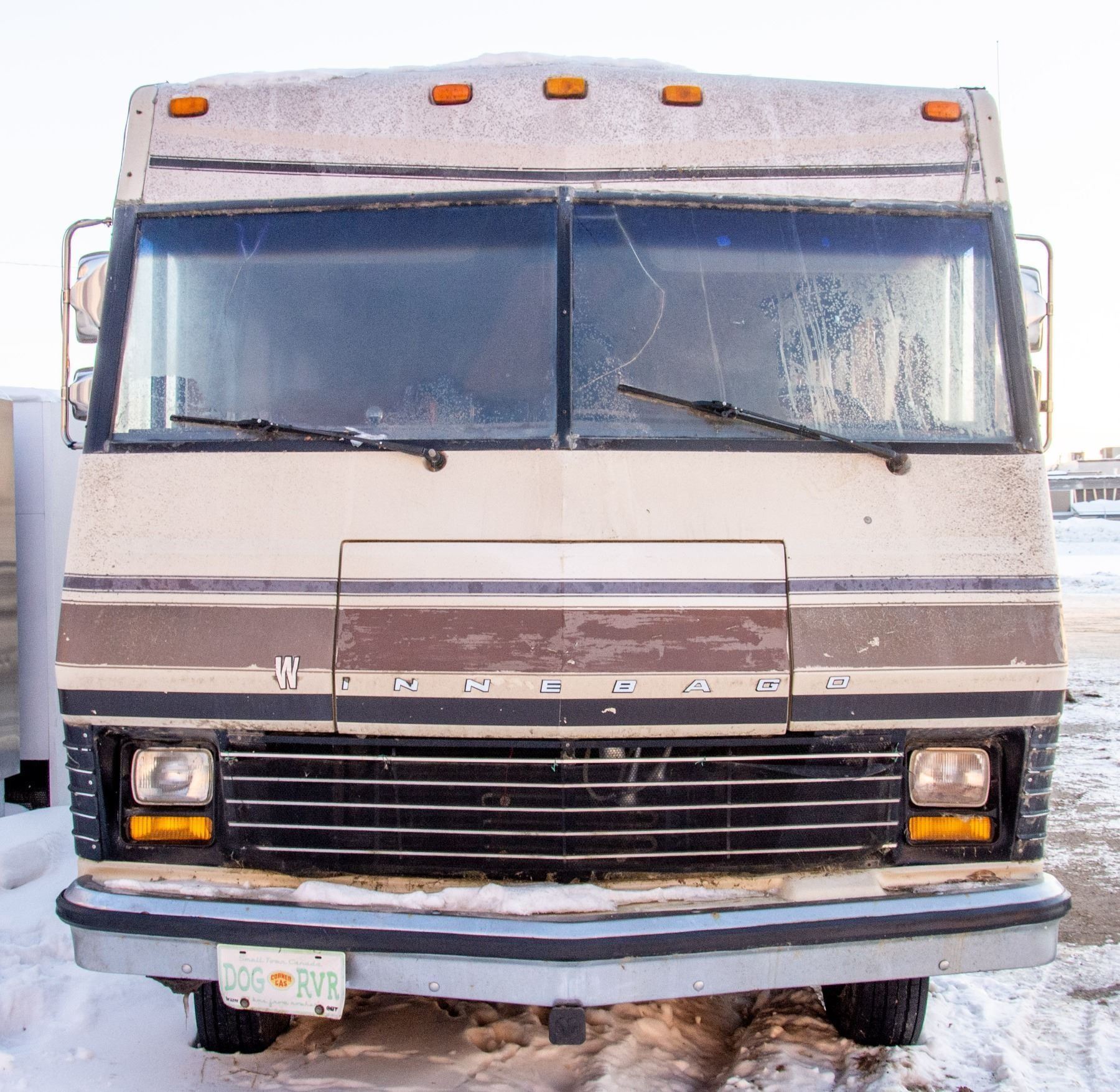 VEHICLE FEATURES NORMAL ACTIVE STATUS, HAS A CD PLAYER, PULL OUT COUCH, KITCHEN DINETTE, STOVE, OVEN, SINK, FRIDGE, DOUBLE SIZE BED, SHOWER, SINK, TOILET AND AWNING. WINDSHIELD IS CRACKED, VEHICLE DOES NOT TURN OVER.