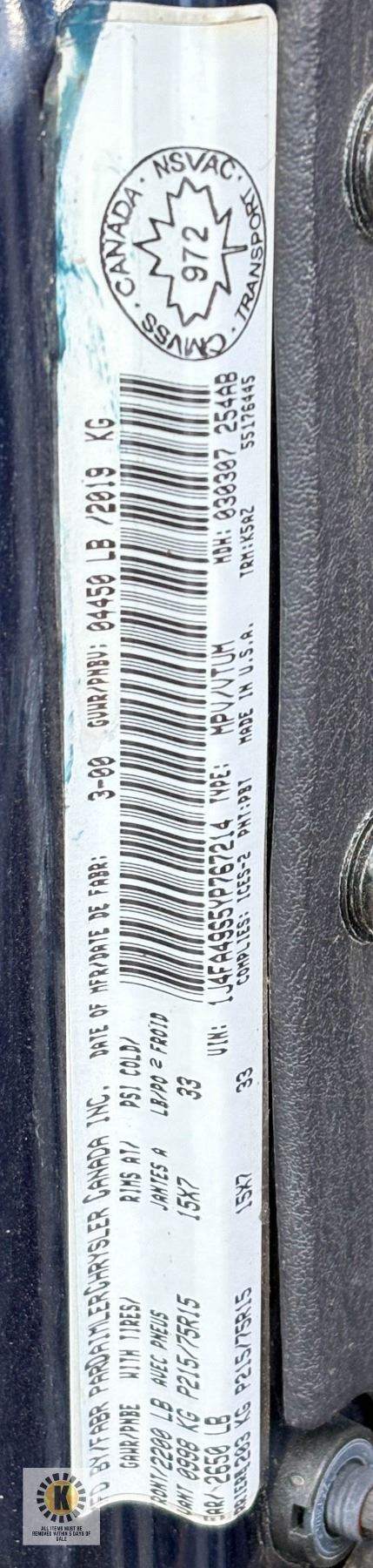 VIN: 1J4FA49S5YP767214