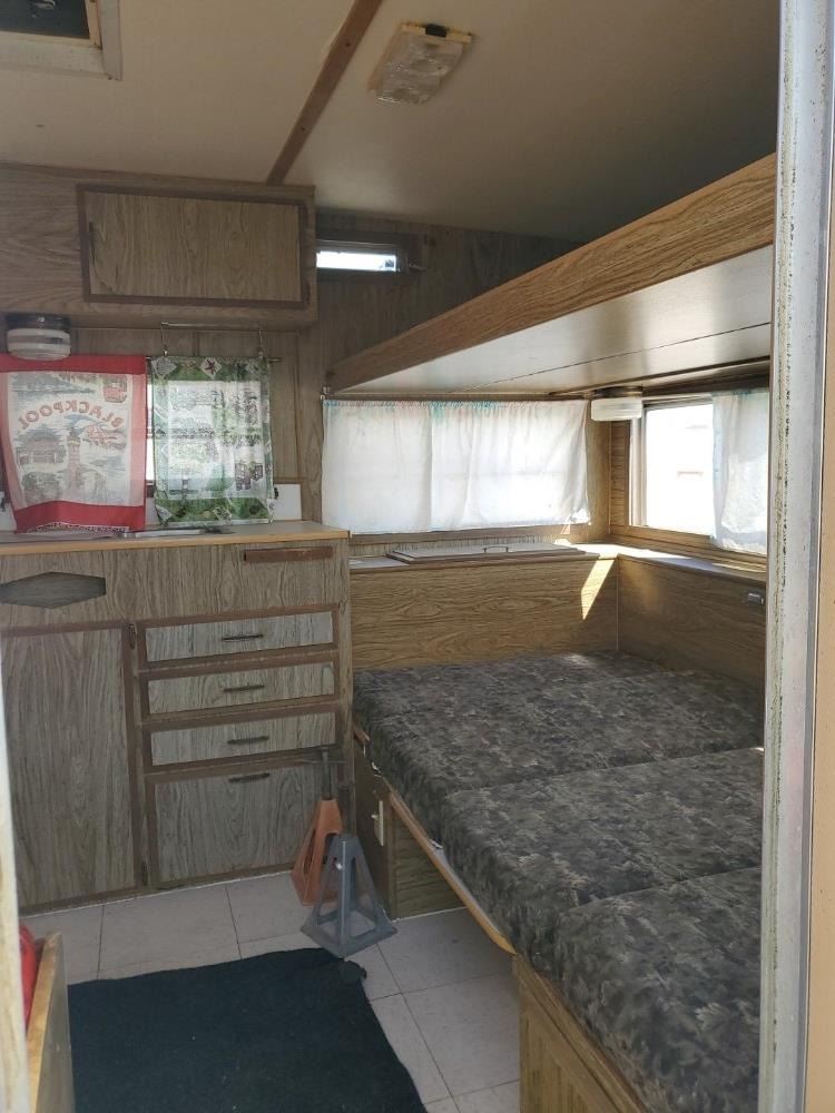 Color: WHITE ATTENTION: THIS TRAILER NEEDS TO BE RE-VINNED, NOT REGISTERABLE IN ITS CURRENT CONDITION. SLEEPS UP TO 4, HAS KITCHEN, BATHROOM (NEEDS RENOVATION), WATER AND GAS HOOK UPS.