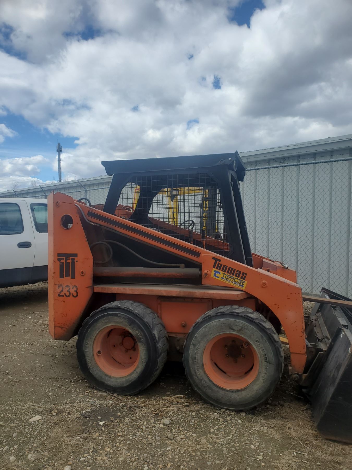 BUCKETS. ALSO INCLUDES FORK ATTACHMENTS, HYDRAULIC ATTACHMENT LINES, 12-16.5" TIRES, SERIAL NUMBER 19604. *ENGINE HAS OIL LEAK, NEEDS BATTERY.