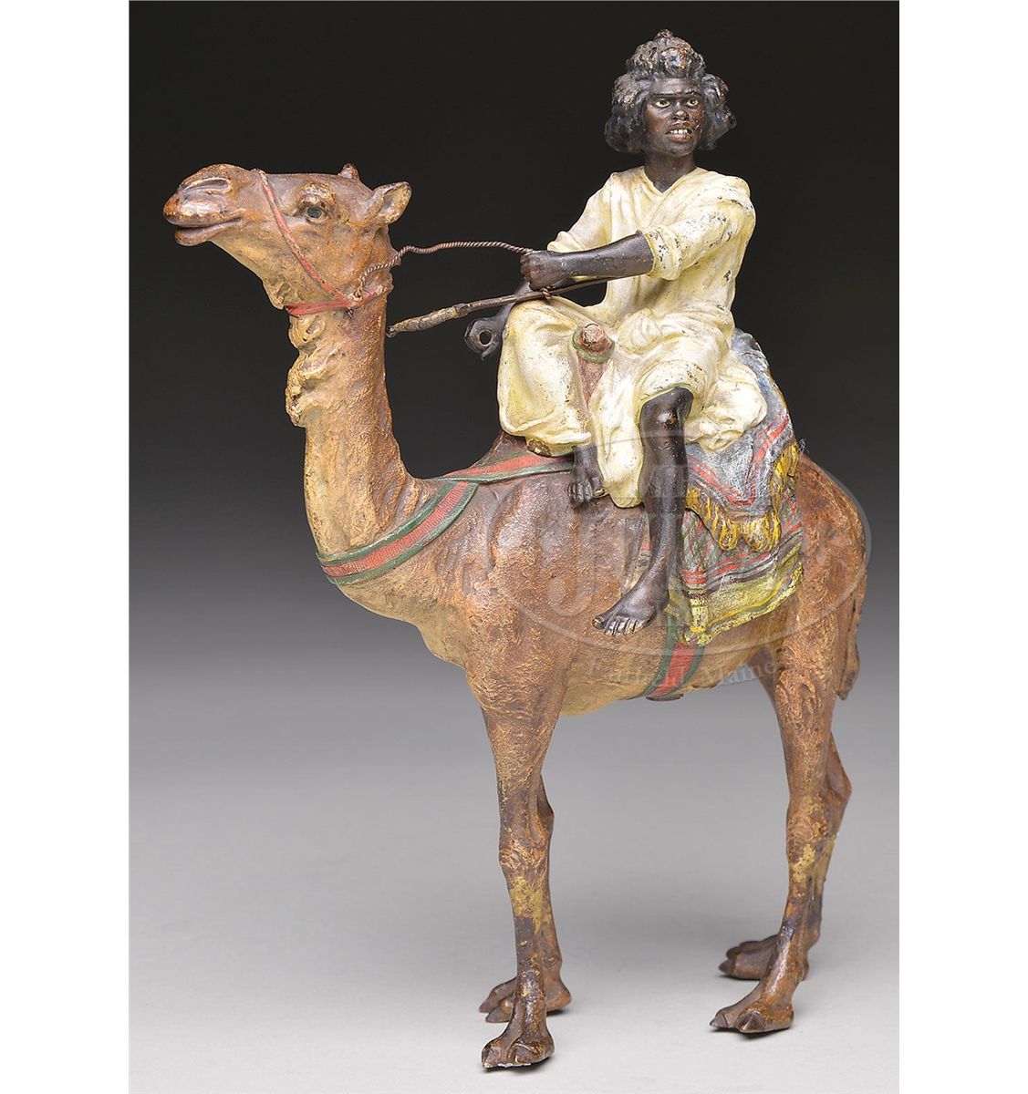 Cold-painted polychromed bronze Signed on bottom "Geschutzt 2807" SIZE: 8-1/2" h x 7" l. CONDITION: Very good, minor wear. 9-29701