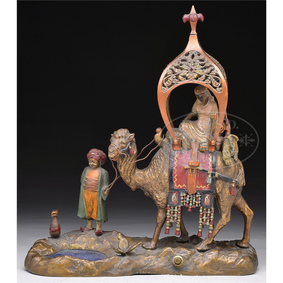 UNSIGNED (Austrian, Early 20th Century) CAMEL WITH HOWDAH AND ATTENDANT AT WATERING HOLE LAMP