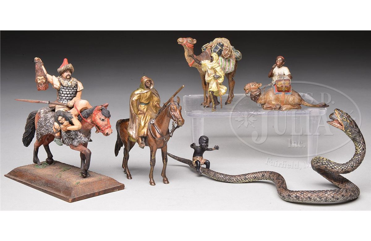 Cold-painted polychromed bronze One is signed "Vienna"; others unmarked SIZE: Range from 1-1/2" h to 3-1/2" h. CONDITION: Generally very good with minor paint wear. 9-29845