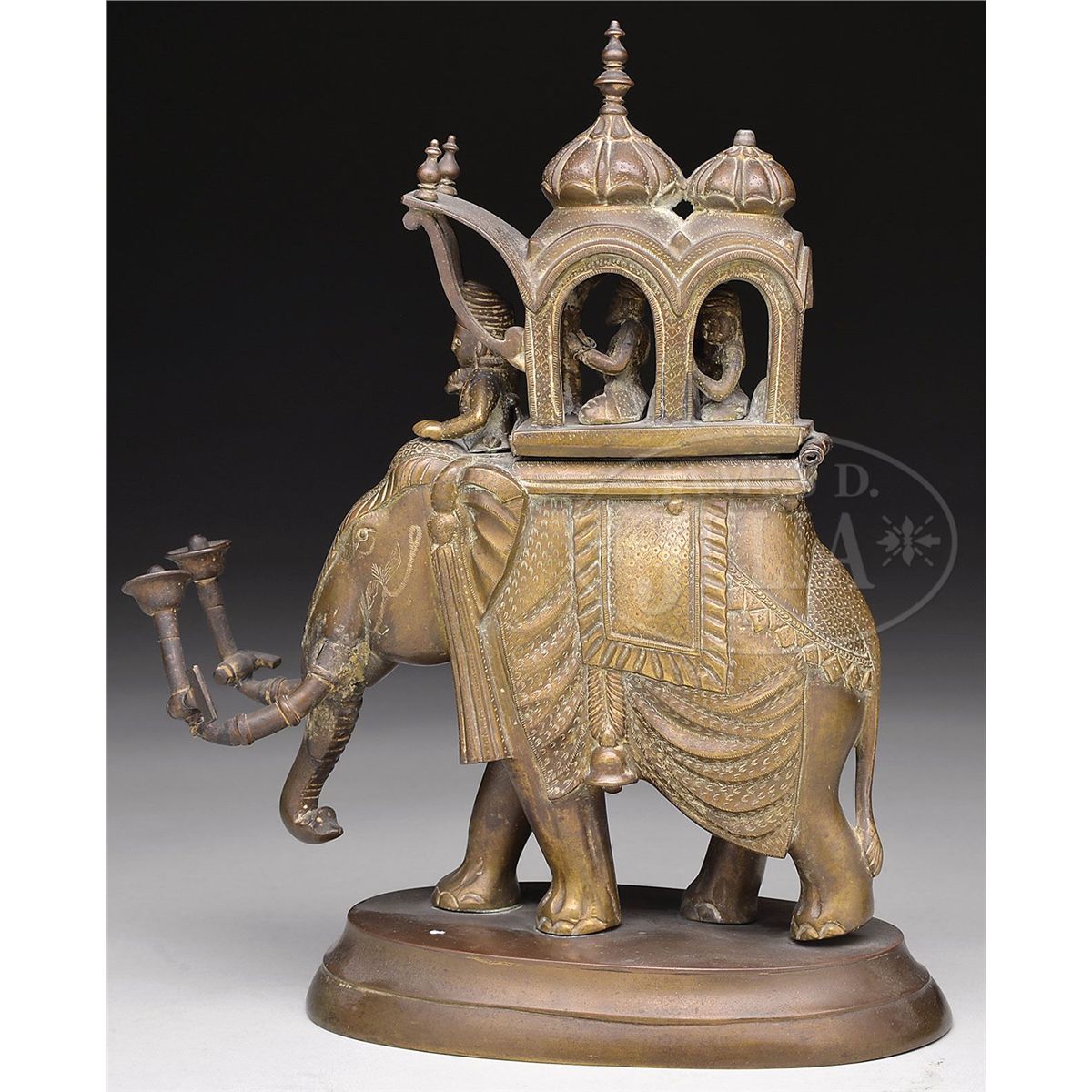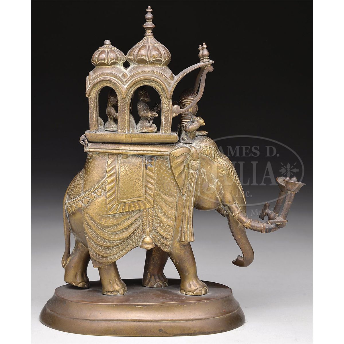 Bronze SIZE: 10-1/2" h x 8" l x 4" d. CONDITION: One trunk loose, otherwise very good with brass-colored patina. 9-29729