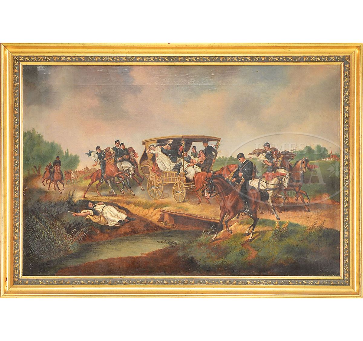 Oil on canvas Housed in a modern gilt frame SIZE: 22-1/4" x 33-1/2". Overall: 26-1/2" x 37-1/2". CONDITION: One small patch to reverse, inpainting, good. 9-90462