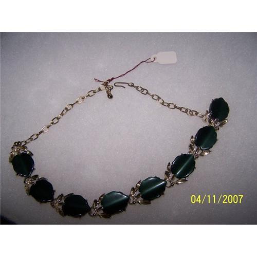 Up for sale is a gorgeous unsigned Forest Green Thermoset Lucite Necklace. It has the quality of Lisner but it?s not signed. It?s in excellent condition. It measures 17 ½? long from end to end
