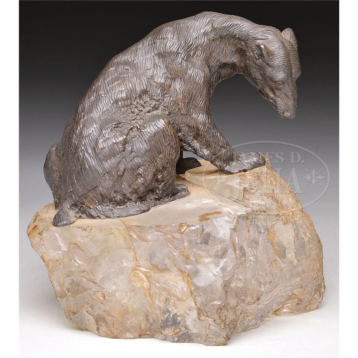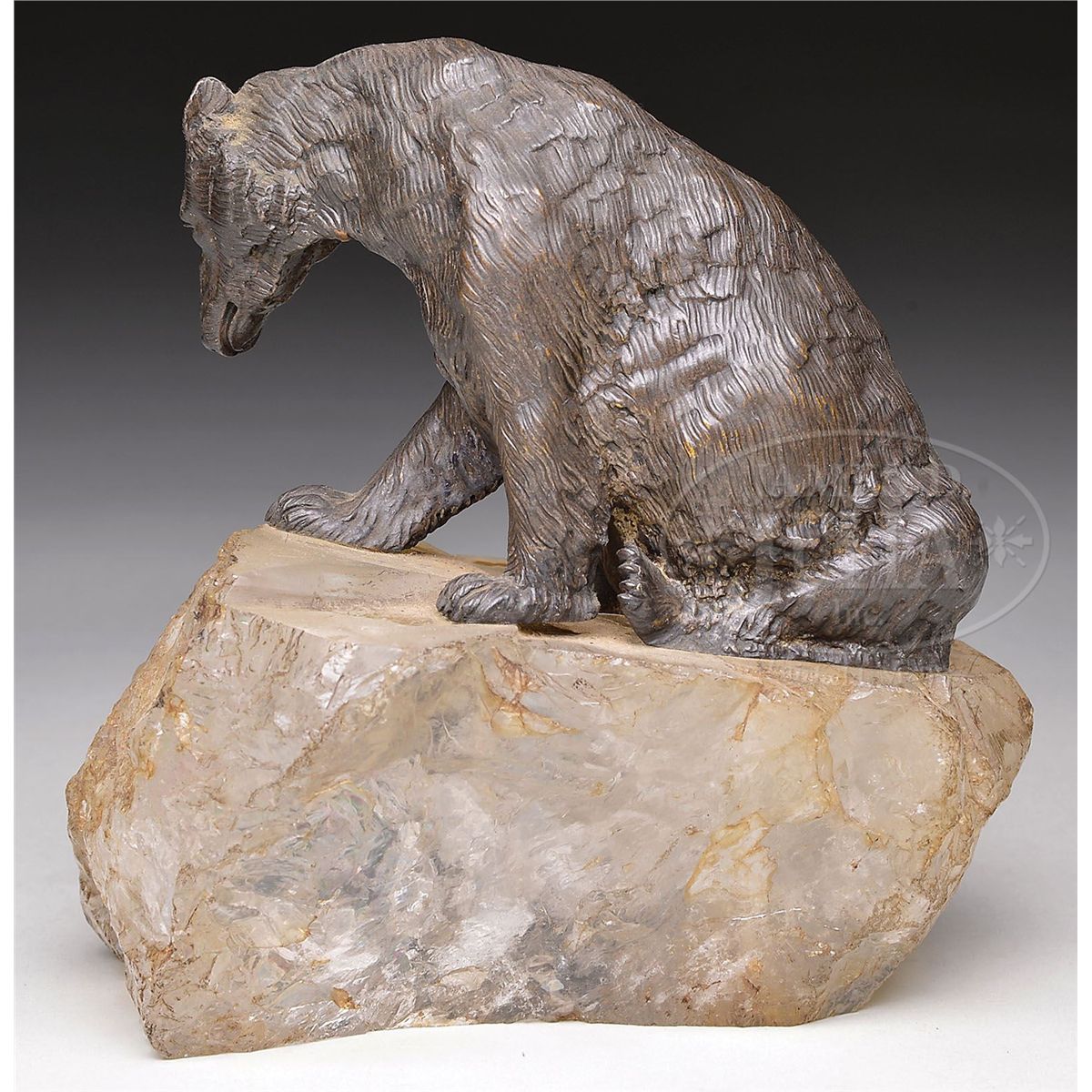 Bronze and Quartz Crystal SIZE: Total: 5-1/2" h. Bronze: 6" l x 4-1/2" w. CONDITION: Brown patina, good. 9-29834