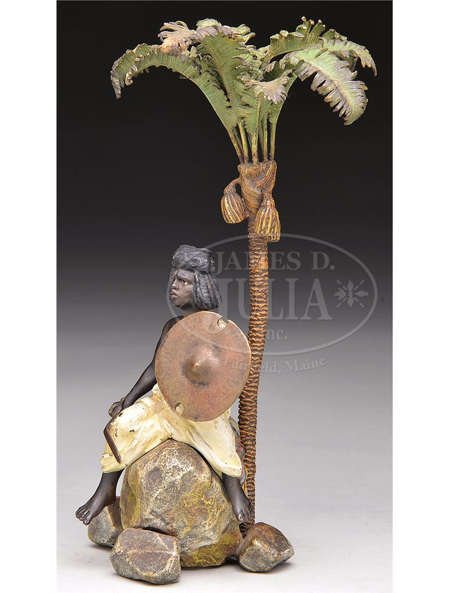 UNSIGNED (Vienna, 19th/20th Century) ARAB WITH SHIELD AND SWORD UNDER PALM TREE