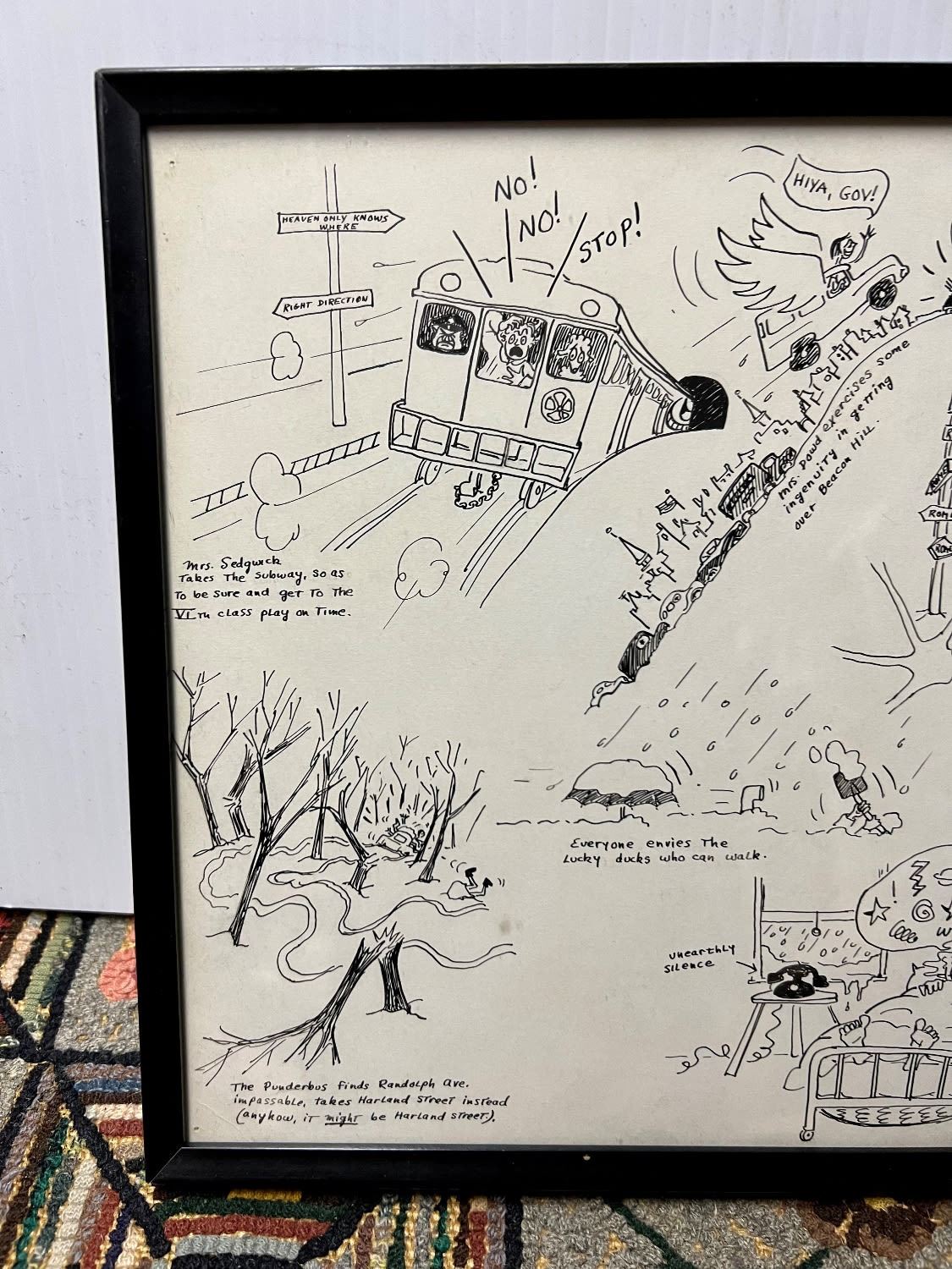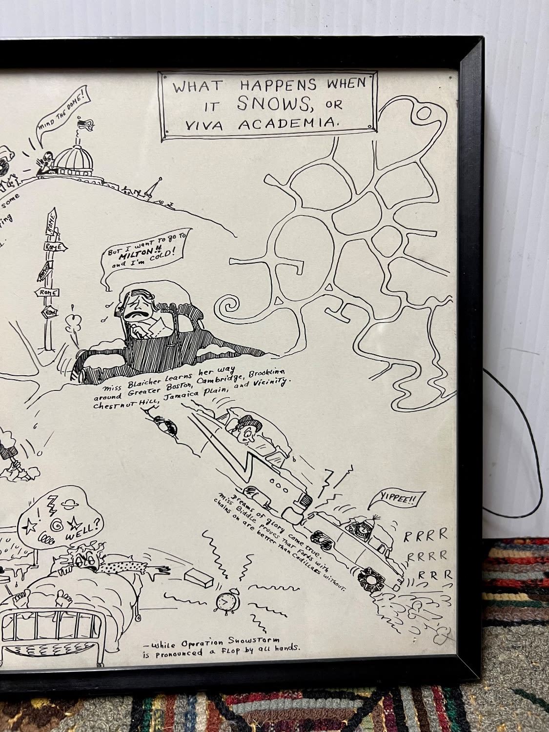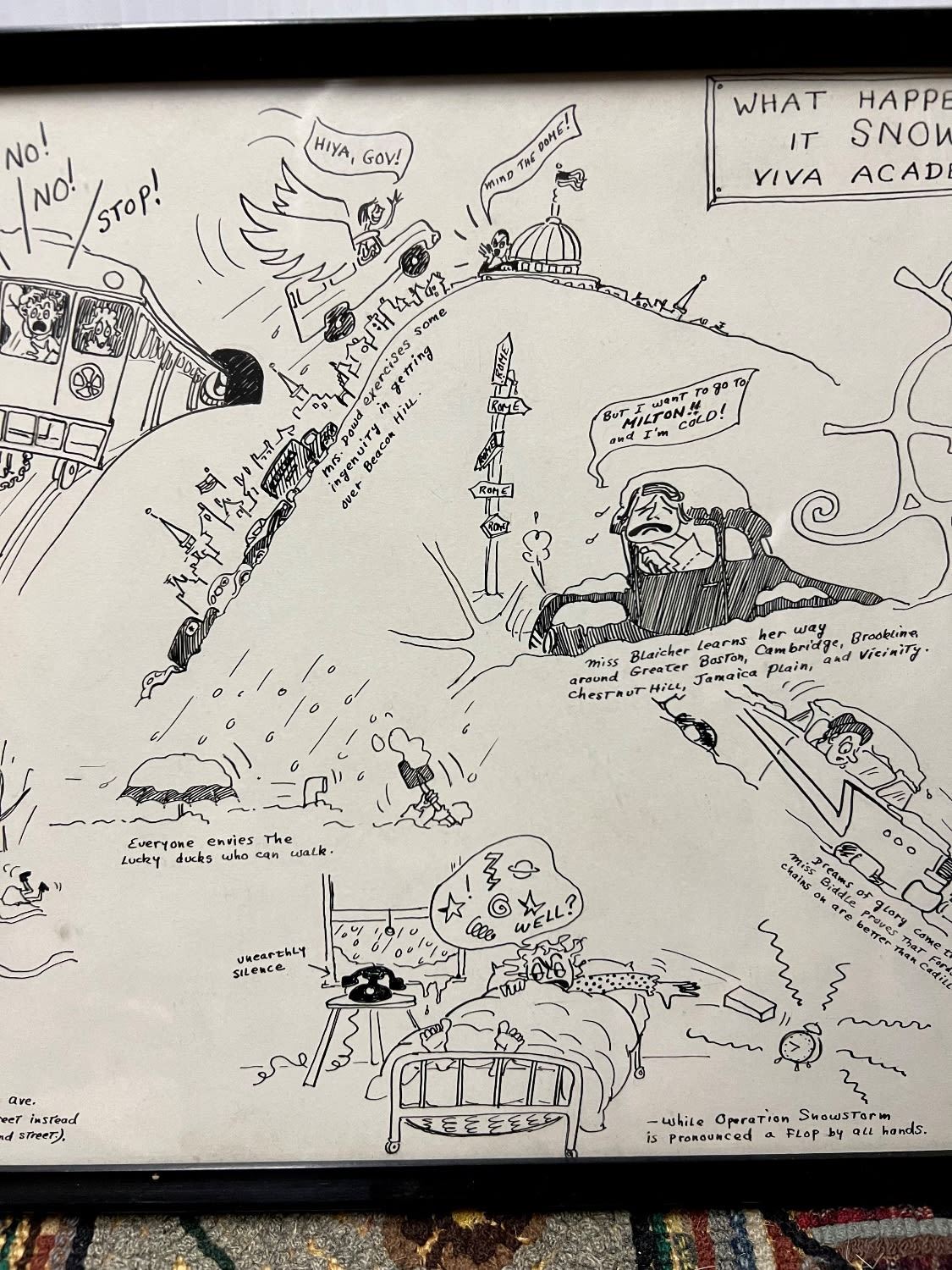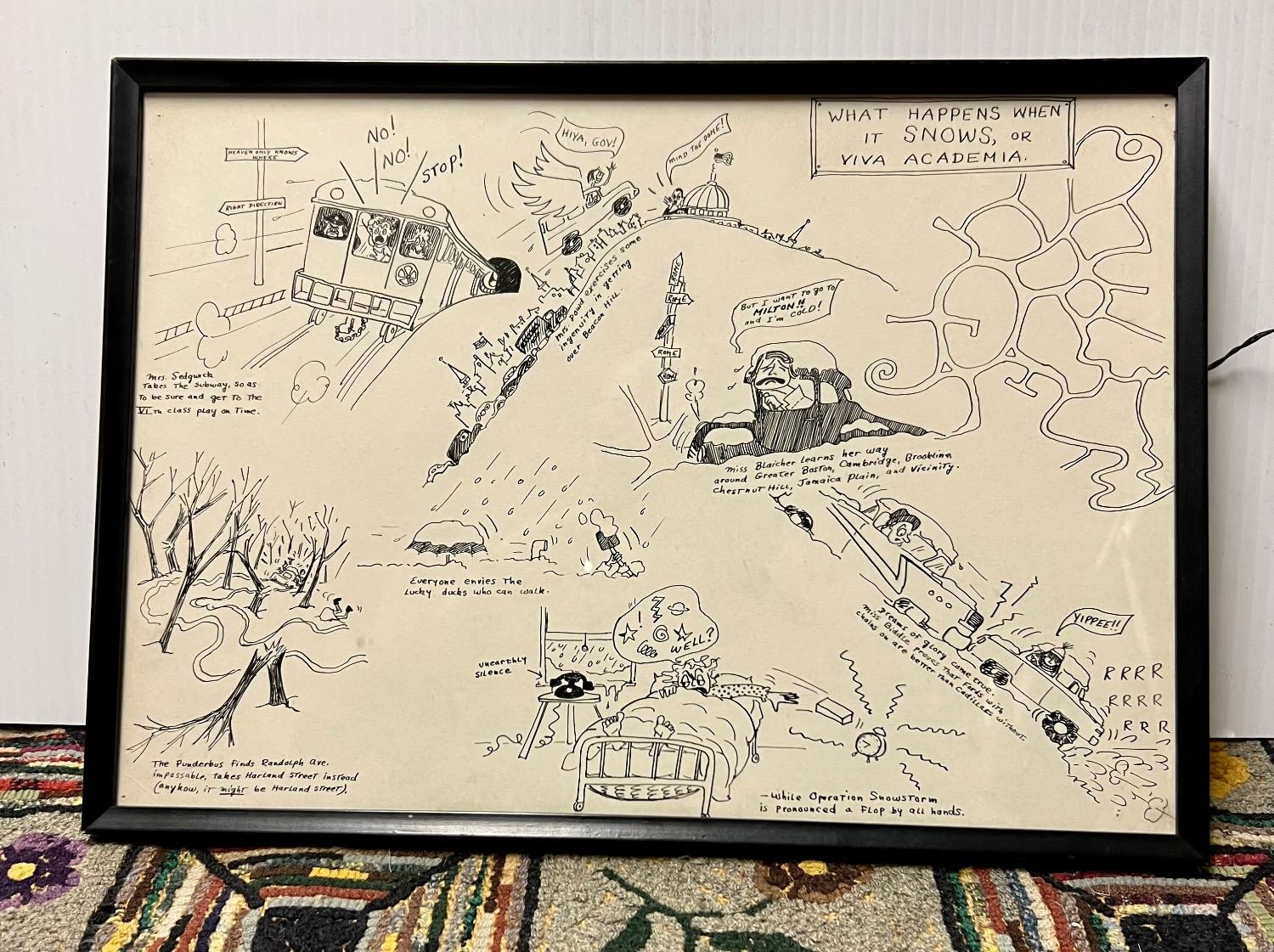 14x10 framed Cartton ink print entitled WHAT HAPPENS WHEN IT SNOWS OR VIVA ACADEMIA