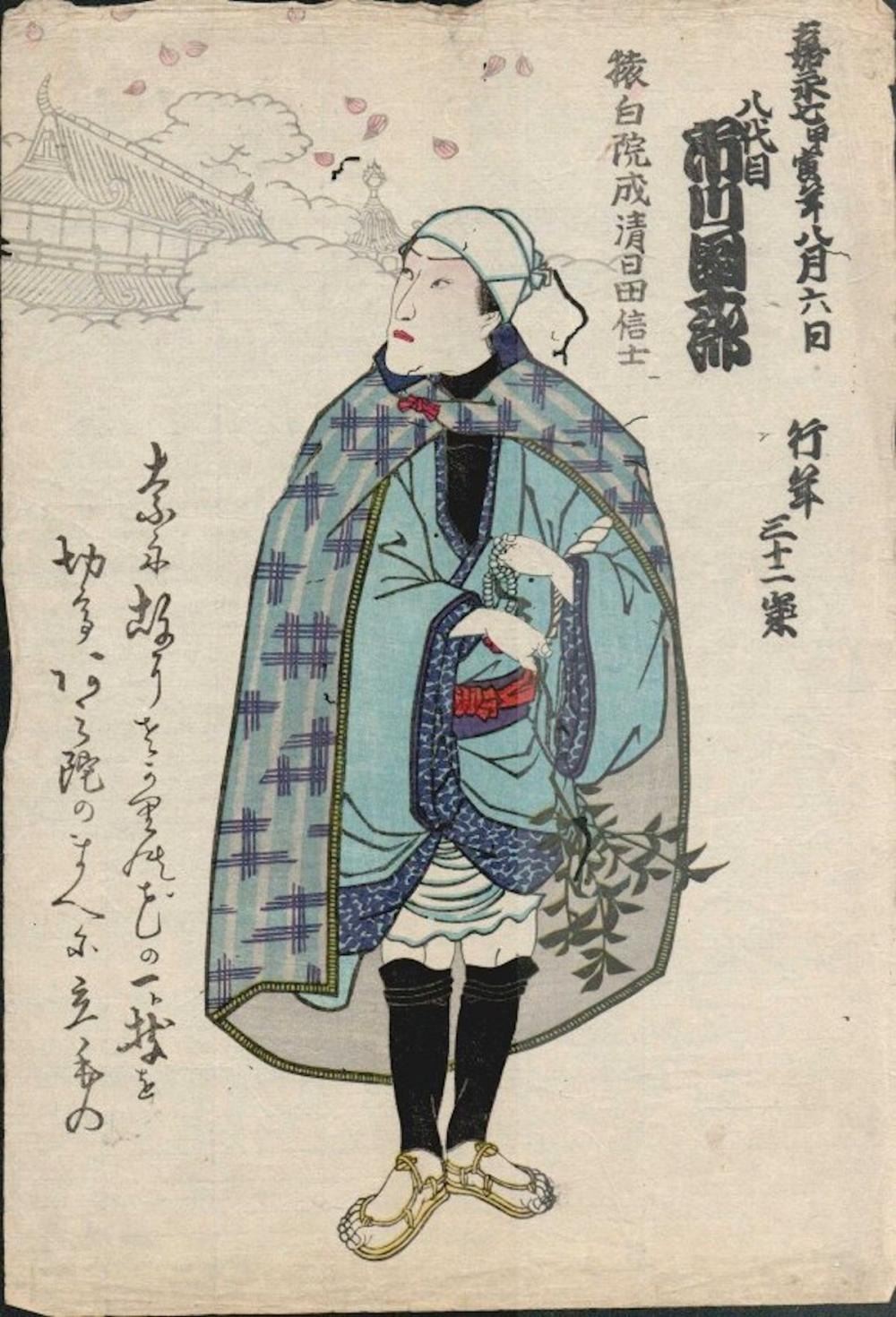UNSIGNED ( SHINA-E ) MEMORIAL PRINT FOR AN ACTOR. OBAN, TATE-E, 14 X 10, FINE CONDITION