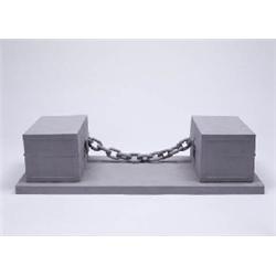 <b>Medium: </b>acrylic, on metallic boxes and chain mounted on wooden base