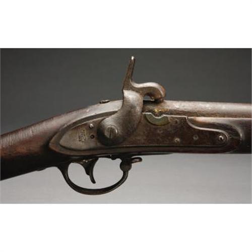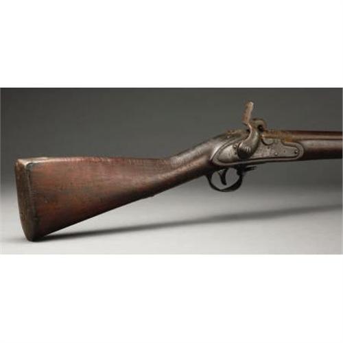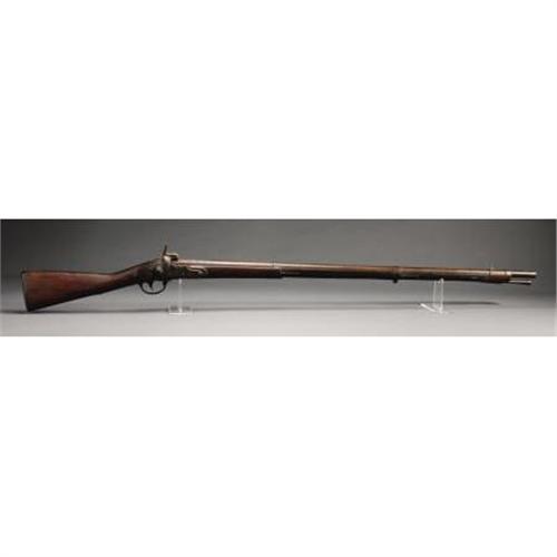 <B>UNTOUCHED PERCUSSION CONVERSION M1816 .69 CALIBER SMOOTHBORE SPRINGFIELD MUSKET.</B></I><BR> A wonderful "attic" condition example of a M1816 conversion musket many of which saw use in the hands of Confederate troops at the outbreak of the war. <BR><B><BR>Condition:</B></I> All metal with deep dark smooth patina, some pitting at breech and on butt plate. Lock with eagle and Springfield 1838 at tail. Arsenal cone/ Belgian conversion retaining vestiges of the original brass pan. Wood shows considerable use, also with deep dark patina with inspector’s cartouche visible. One small split just forward of the lock, minor. Front sling swivel broken and missing and ramrod is a period replacement, otherwise complete and original in every respect. <BR><BR><b>Shipping:</b> Requires 3rd Party Shipping (<a target="_blank" href="http://www.heritageauctions.com/common/shipping.php">view shipping information</a>)