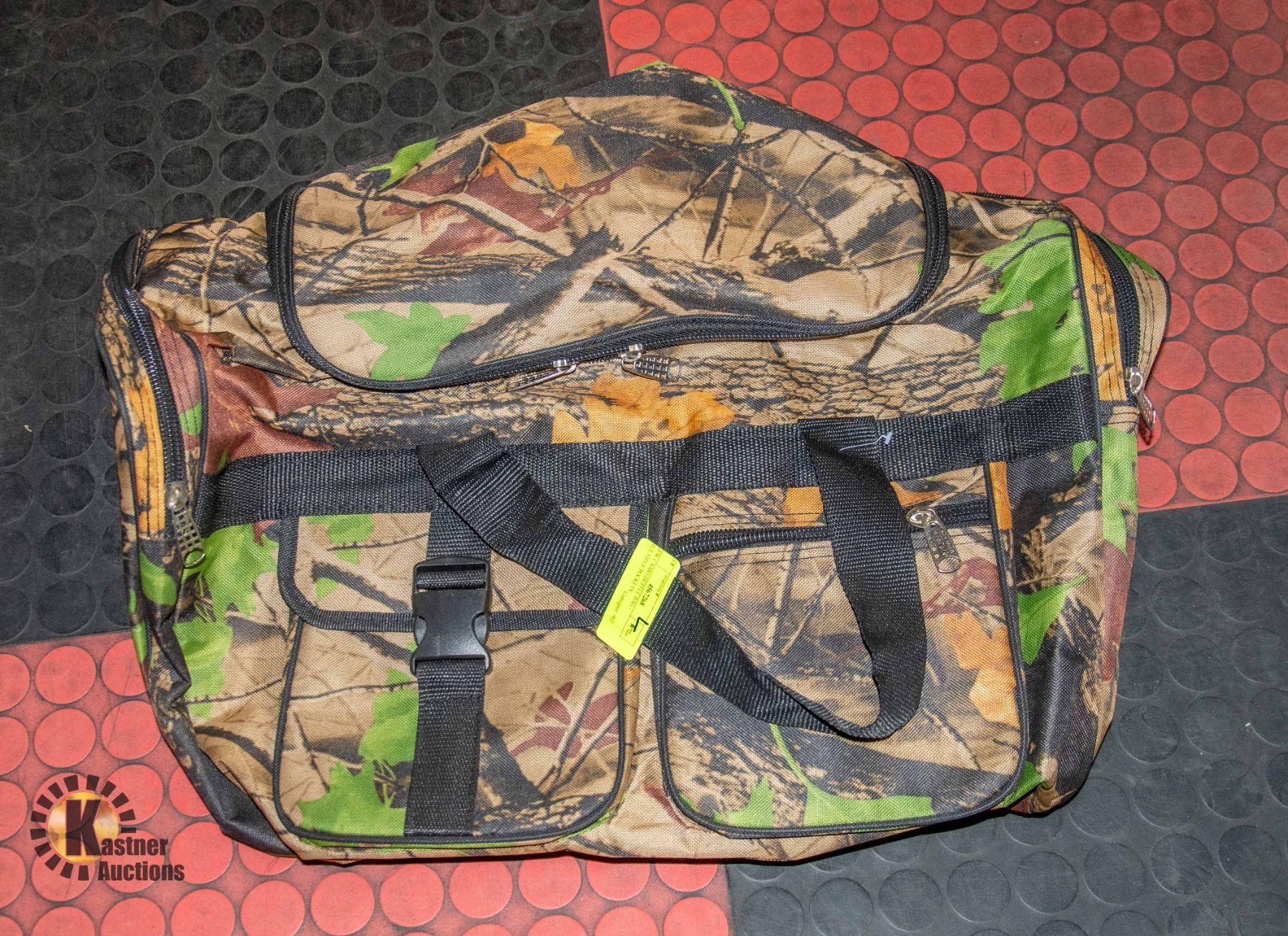 UNUSED CAMO DUFFLE BAG - MULTIPLE POCKETS,