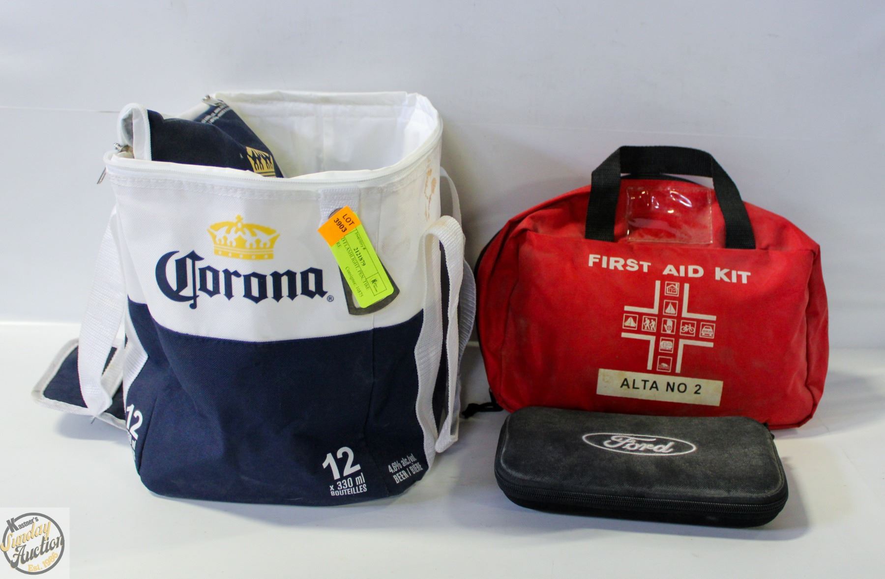 GUAGE + MULTI TOOL IN FORD BLACK CANVAS SOFT CARRYING CASE + RED CANVAS FIRST AID KIT CARRYING BAG