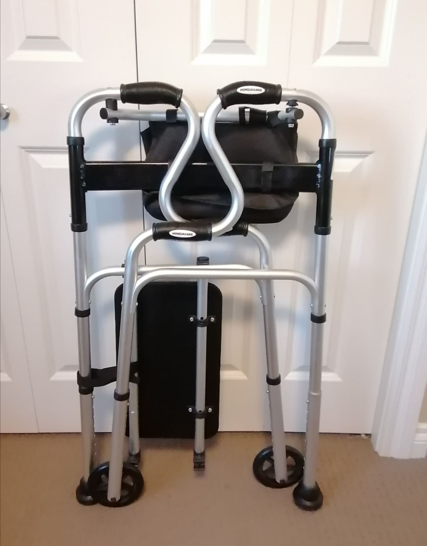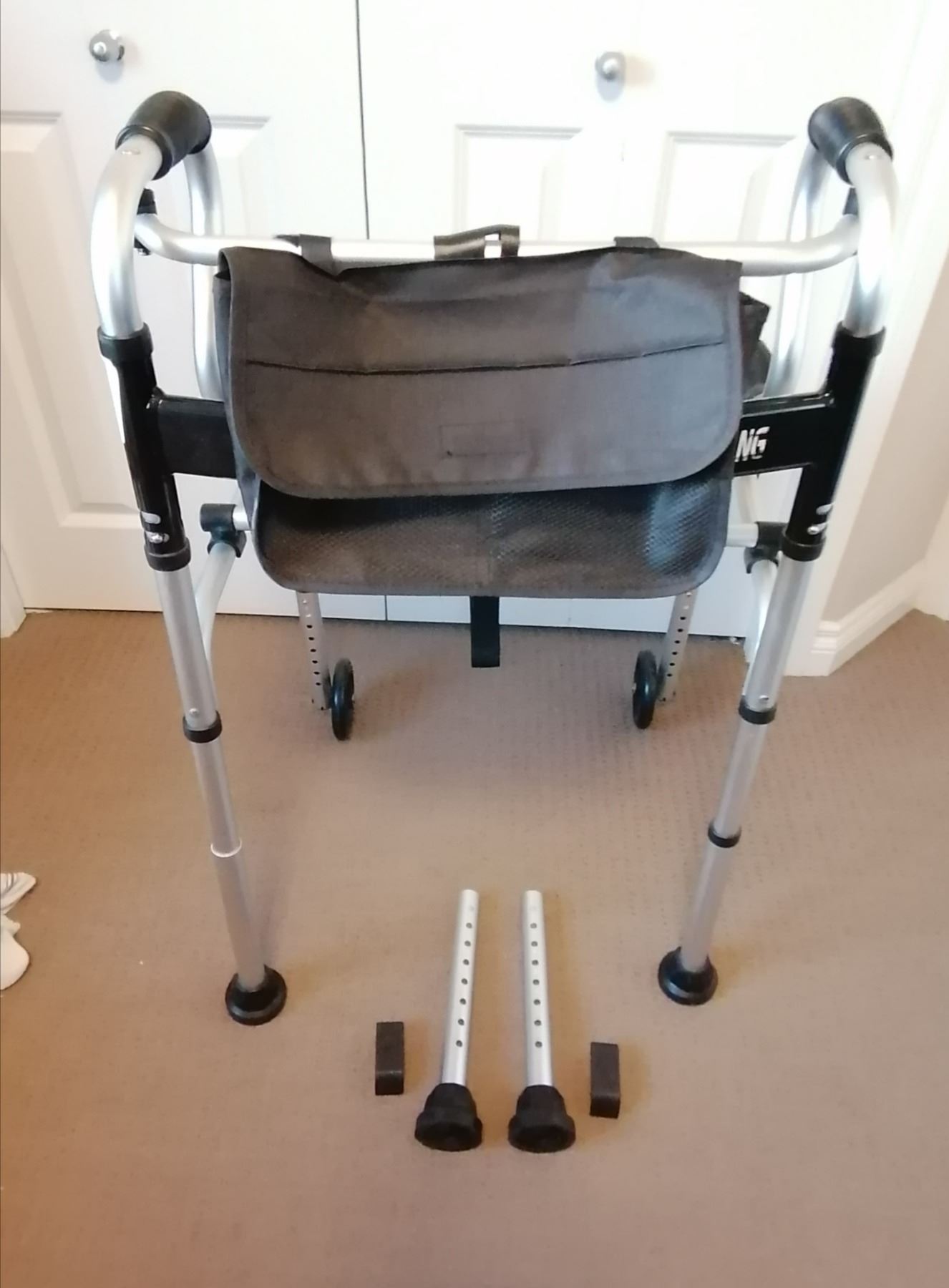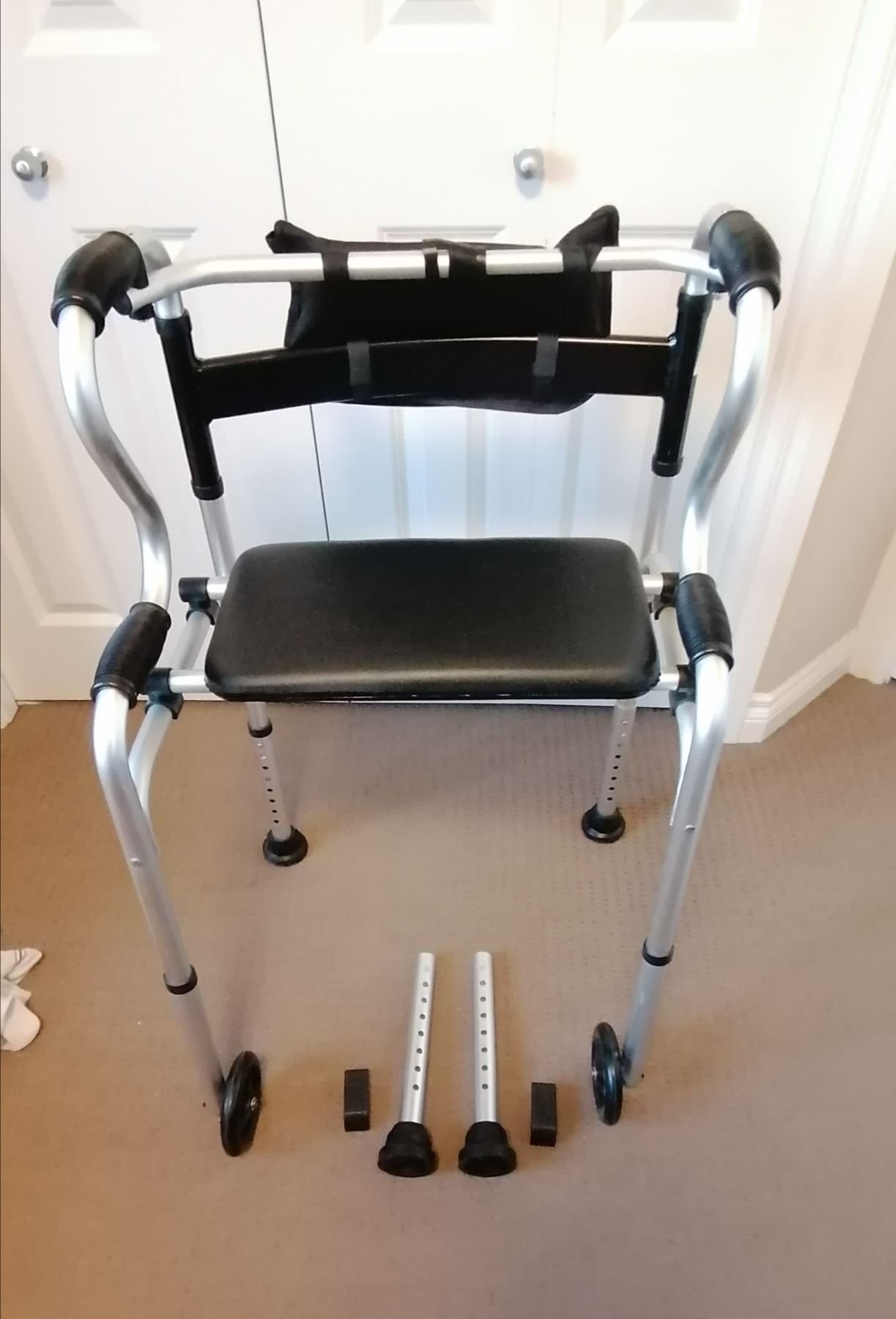 LIGHTWEIGHT FOLDING WALKER FRAME WITH ADJUSTABLE HEIGHT FOR TALL OR SHORT. DETACHABLE LEGS/REPLACEABLE LEGS, CAN HAVE WHEELS OR JUST LEGS + ATTACHMENTS FOR ICY CONDITIONS. **RETAIL $282** **ALL ITEMS MUST BE REMOVED BY 5PM SATURDAY, OCTOBER 5TH 2024. ALL REMAINING ITEMS WILL BE SUBJECT TO A $6.00 PER DAY STORAGE CHARGE. ANY ITEMS REMAINING AFTER MONDAY, OCTOBER 21ST 2024 WILL BE CONSIDERED FORFEITED. NO REFUNDS WILL BE ISSUED FOR FORFEITED ITEMS. TO SCHEDULE A PICK UP APPOINTMENT CLICK HERE