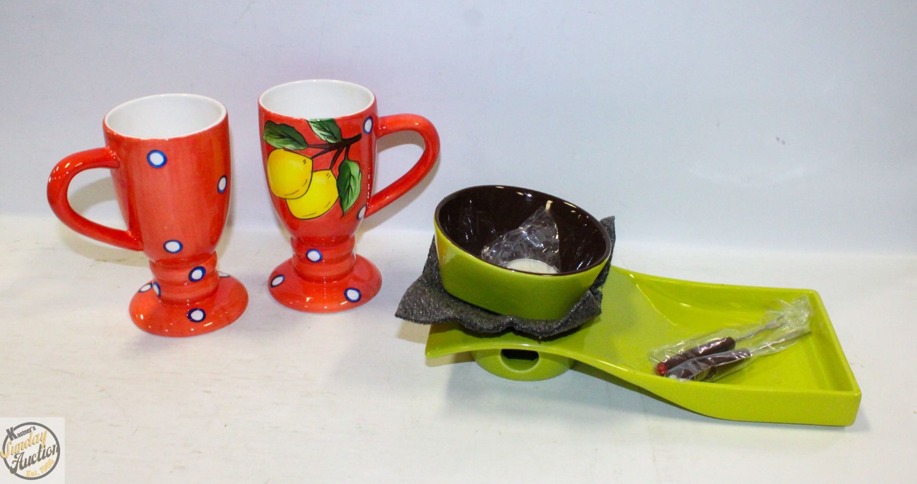 CARDINAL INC FRUIT DU JOUR HANDPAINTED MUGS **ALL ITEMS MUST BE REMOVED BY 5PM SATURDAY, SEPTEMBER 6TH 2025. ALL REMAINING ITEMS WILL BE SUBJECT TO A $6.00 PER DAY STORAGE CHARGE. ANY ITEMS REMAINING AFTER MONDAY, SEPTEMBER 22ND 2025 WILL BE CONSIDERED FORFEITED. NO REFUNDS WILL BE ISSUED FOR FORFEITED ITEMS. TO SCHEDULE A PICK UP APPOINTMENT CLICK HERE