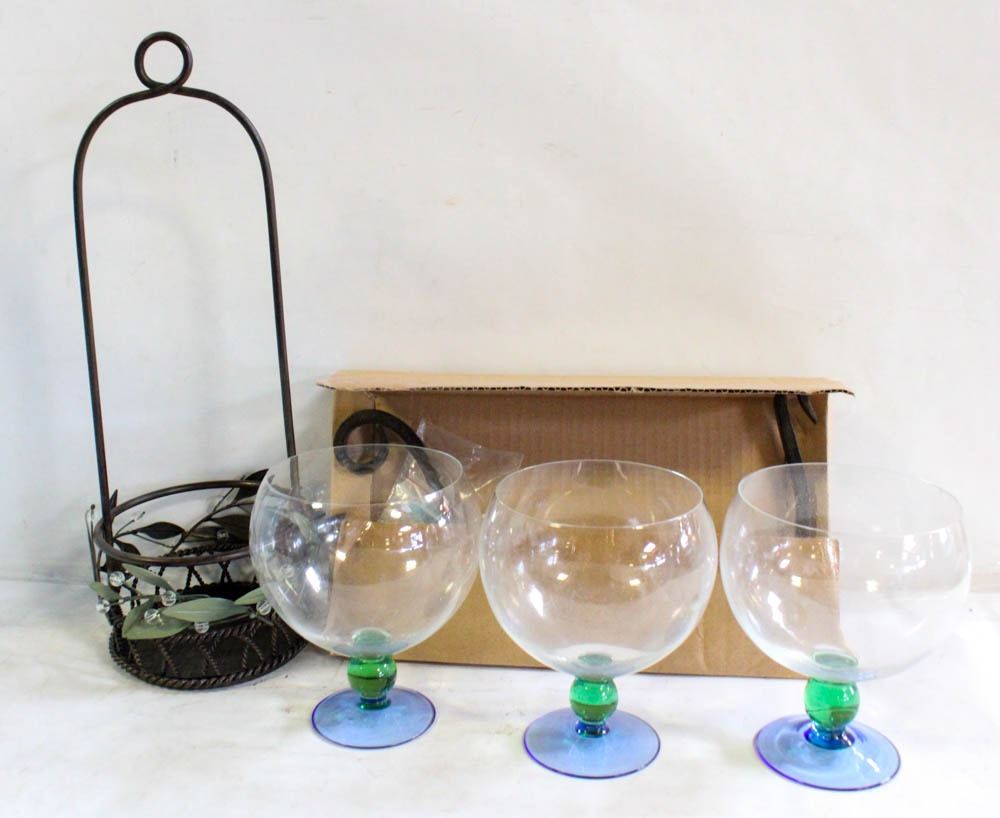 WALL HANGING CANDLE HOLDER WITH WALL/ TREE HOOK AND PARTYLITE WIDE MOUTH GOBLETS