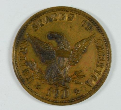 UNUSUAL 19TH CENTURY BRASS TOKEN $10 USA, ARGENTINA XF