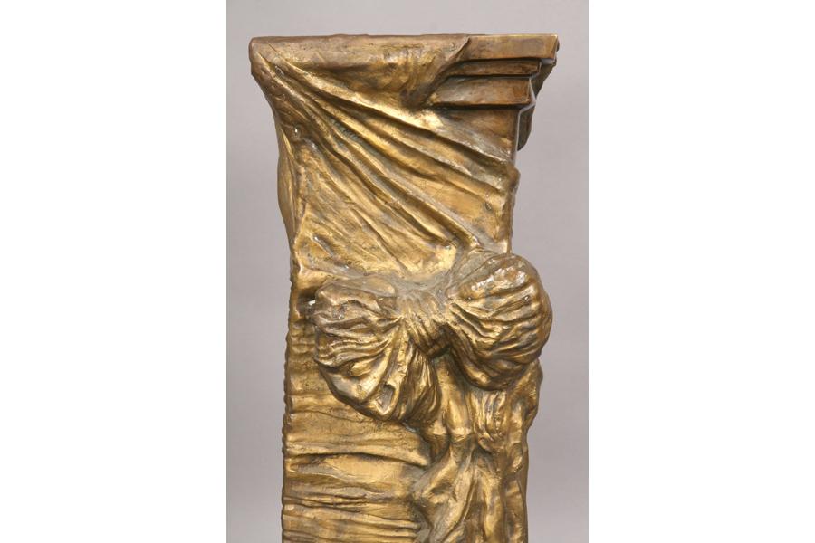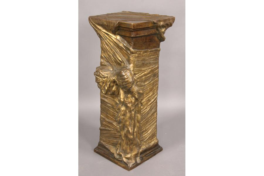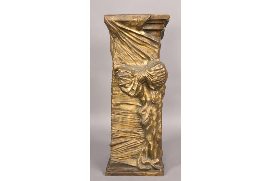 Unusual cast bronze pedestal decorated with faux draped cloth raised on flared base circa 1960. Ht: 35" Width: 14" Depth: 13.5" ***PLEASE NOTE: All property shall be paid for by the purchaser within five (5) business days of the sale. Kamelot Auctions accepts cash (In house only), personal checks, certified checks and money orders. We do not accept credit cards or Paypal under any circumstances. Please note our policy regarding payments from International buyers: The only acceptable method of payment is a bank wire/bank transfer. For invoices more than $1000, there is no additional fee for this service. For invoices less than $1000, please include an additional $25 wire fee. We will be happy to forward our bank wiring information after the completion of the auction. Thank you for your understanding and cooperation. All purchases must be removed within 15 business days after an auction. Property not removed from our facility after 15 business days will be moved to an off-site storage facility at a charge of $10.00 per day payable by the buyer. Kamelot does NOT provide shipping services or estimates. However, we recommend the following independent shipping services: Antique Transport Co. at antiquetransport@cs.com, Farren Transport at farrentransport@comcast.net or All Points Shipping at jb@allpointsshippingnj.com for quotations and shipping arrangements for furniture and other large items that would require a blanket wrap shipping company. For quotations and shipping arrangements for smaller items that would traditionally be shipped through UPS, please contact The UPS Store at store4744@theupsstore.com or The Packaging Store at hrpa112@aol.com. Clients are welcome to pick up their items from our location or make their own shipping arrangements.