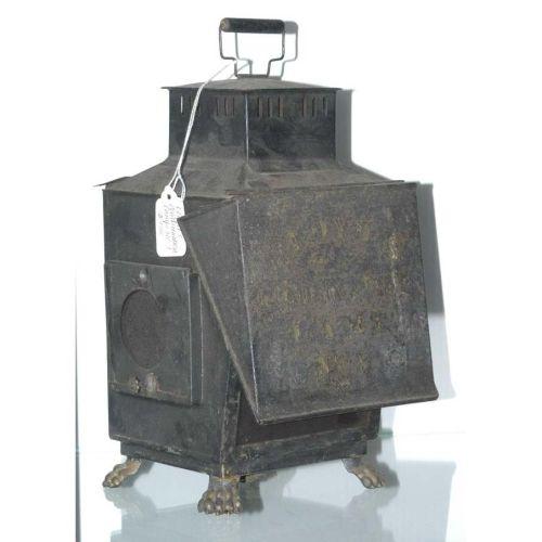 UNUSUAL EARLY LANTERN, Lloyds Combination Lantern #1, wear, painted lettering barely visible, PACKING AND SHIPPING: Fairfield Auction will provide packing and shipping (excluding insurance) within the Continental U.S. for $20. Buyer is welcome to use any other service or pick-up at the gallery.