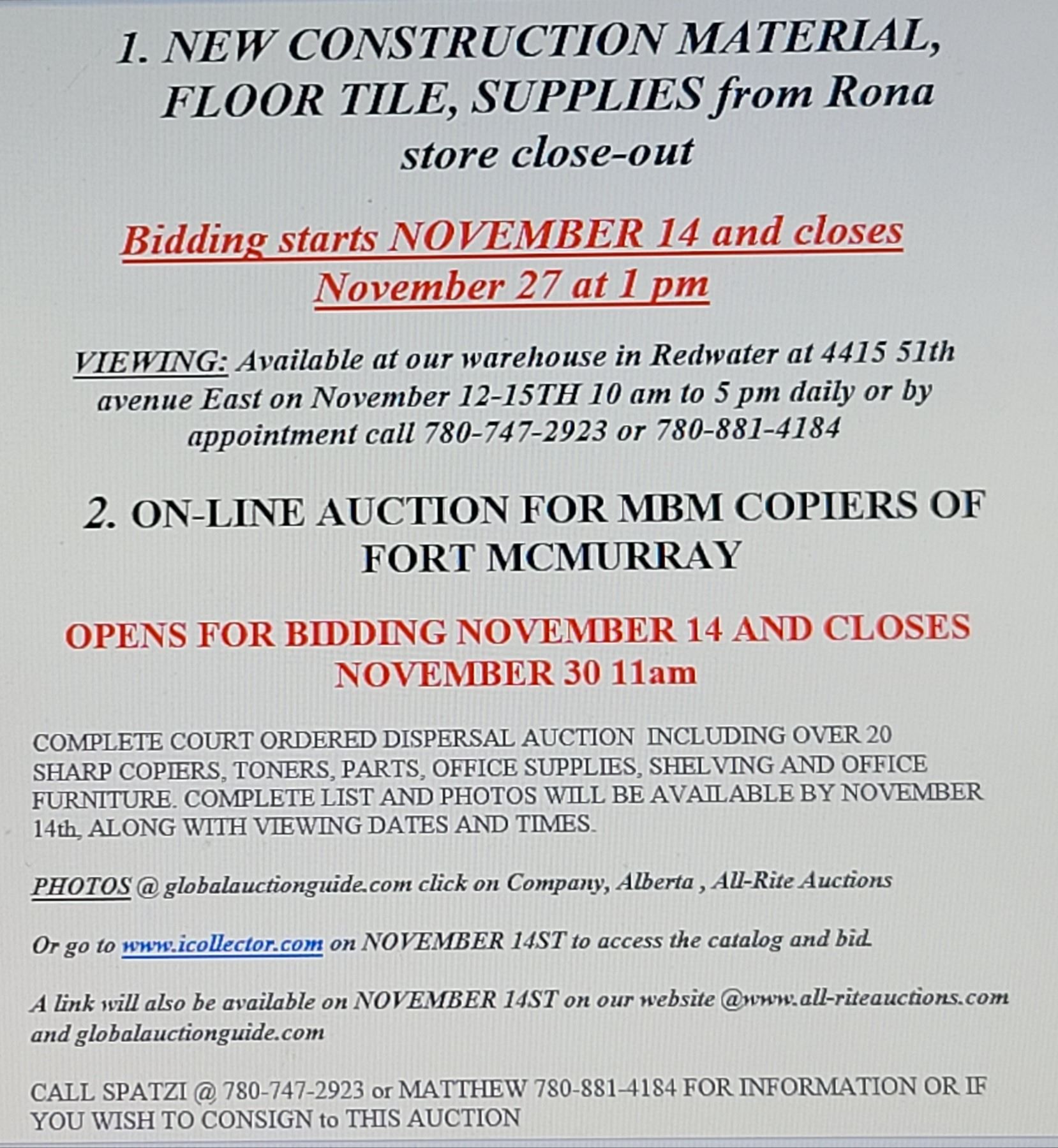A link will also be available on NOVEMBER 14ST on our website @www.all-riteauctions.com