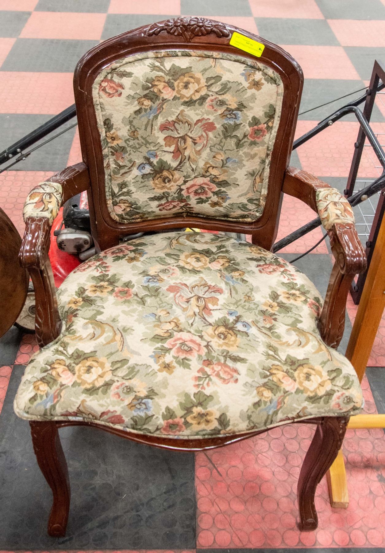 UPHOLSTERED CARVED STYLE ARM CHAIR