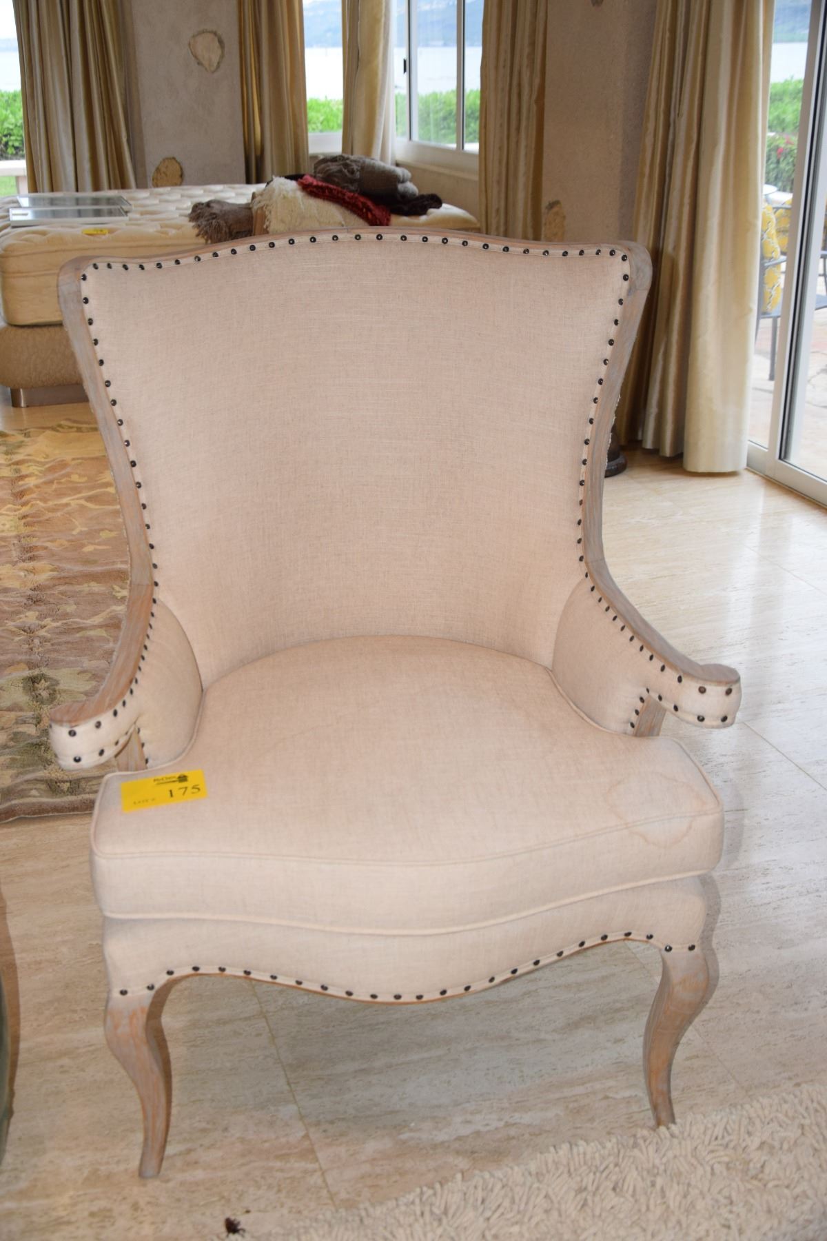 UPHOLSTERED WING BACK ARM CHAIR (MATCHES LOT 67)