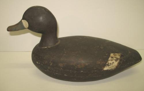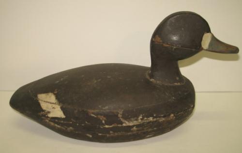 UPPER BAY, MARYLAND REDHEAD HEN DECOY. Shows wear and loss to paint. Shows cracking to wood at head. 13.75” L