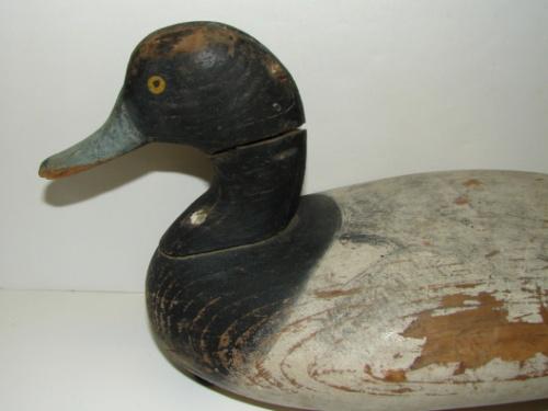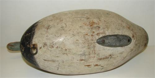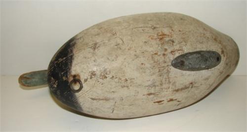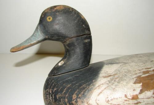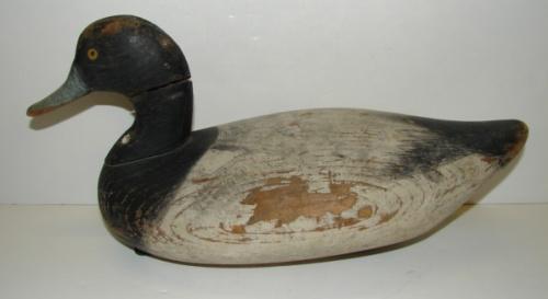 JAMES A. CURRIER UPPER BAY, MARYLAND SCAUP DECOY. Circa 1920. Shows minor loss to paint and split to wood at neck. Unsigned. 13.5” L